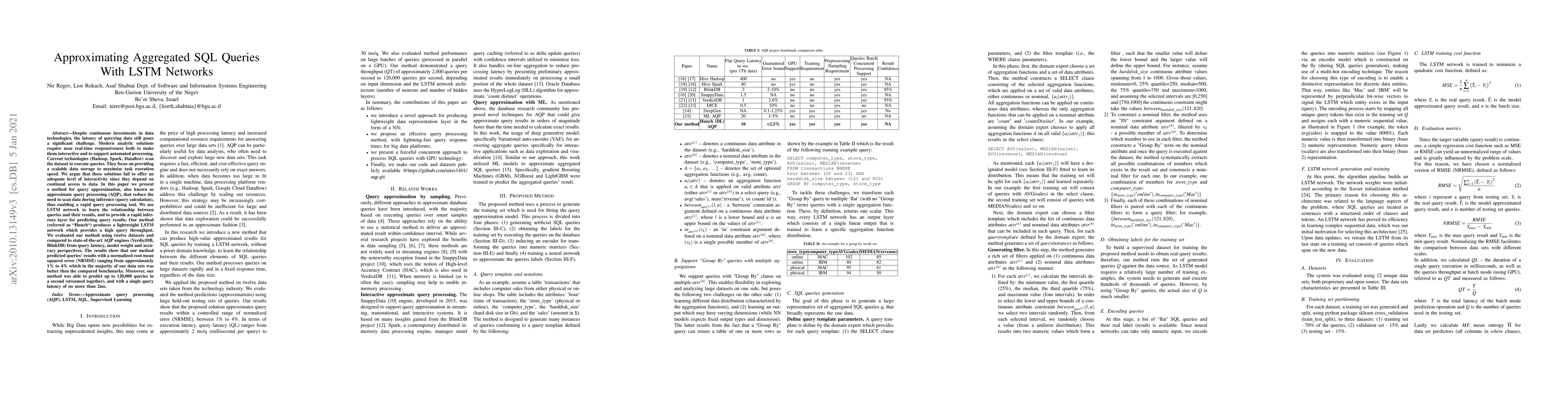 Despite continuous investments in data technologies, the latency of querying data still poses a significant challenge. Modern analytic solutions require near real-time responsiveness both to make them interactive and to support automated processing. Current technologies (Hadoop, Spark, Dataflow) scan the dataset to execute queries. They focus on providing a scalable data storage to maximize task execution speed. We argue that these solutions fail to offer an adequate level of interactivity since they depend on continual access to data. In this paper we present a method for query approximation, also known as approximate query processing (AQP), that reduce the need to scan data during inference (query calculation), thus enabling a rapid query processing tool. We use LSTM network to learn the relationship between queries and their results, and to provide a rapid inference layer for predicting query results. Our method (referred as ``Hunch``) produces a lightweight LSTM network which provides a high query throughput. We evaluated our method using twelve datasets and compared to state-of-the-art AQP engines (VerdictDB, BlinkDB) from query latency, model weight and accuracy perspectives. The results show that our method predicted queries' results with a normalized root mean squared error (NRMSE) ranging from approximately 1\% to 4\% which in the majority of our data sets was better then the compared benchmarks. Moreover, our method was able to predict up to 120,000 queries in a second (streamed together), and with a single query latency of no more than 2ms.