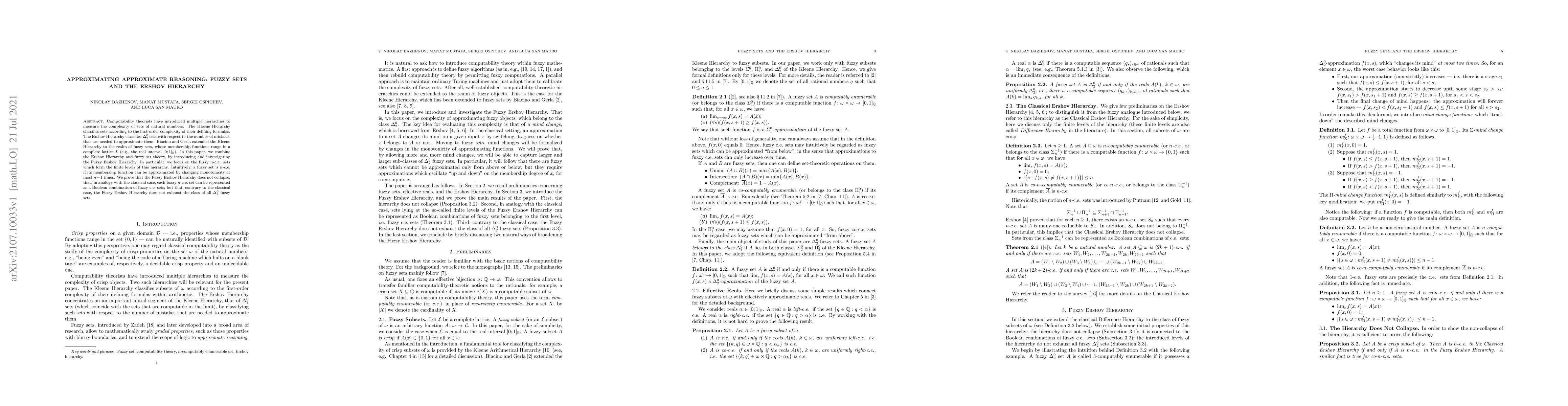 Researchers introduced a new hierarchy called Fuzzy Ershov Hierarchy to measure complexity of fuzzy sets, finding that it does not collapse like its classical counterpart, but still can represent fuzzy $n$-c.e. sets as Boolean combinations of fuzzy c.e. sets.