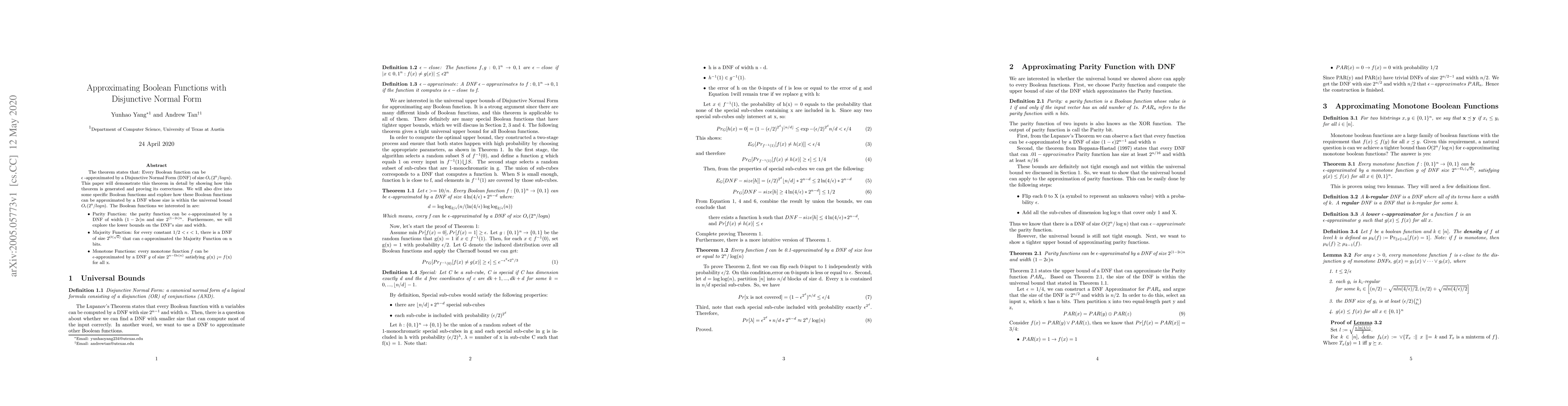 The theorem states that: Every Boolean function can be $\epsilon -approximated$ by a Disjunctive Normal Form (DNF) of size $O_{\epsilon}(2^{n}/\log{n})$. This paper will demonstrate this theorem in detail by showing how this theorem is generated and proving its correctness. We will also dive into some specific Boolean functions and explore how these Boolean functions can be approximated by a DNF whose size is within the universal bound $O_{\epsilon}(2^{n}/\log{n})$. The Boolean functions we interested in are: Parity Function: the parity function can be $\epsilon-approximated$ by a DNF of width $(1 - 2\epsilon)n$ and size $2^{(1 - 2\epsilon)n}$. Furthermore, we will explore the lower bounds on the DNF's size and width. Majority Function: for every constant $1/2 < \epsilon < 1$, there is a DNF of size $2^{O(\sqrt{n})}$ that can $\epsilon-approximated$ the Majority Function on n bits. Monotone Functions: every monotone function f can be $\epsilon-approximated$ by a DNF g of size $2^{n - \Omega\epsilon(n)}$ satisfying $g(x) \le f(x)$ for all x.