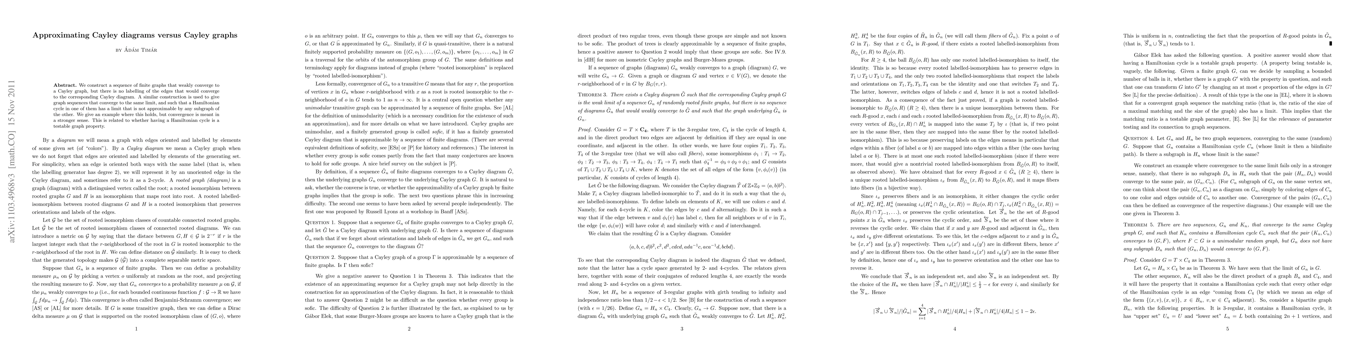 We construct a sequence of finite graphs that weakly converge to a Cayley graph, but there is no labelling of the edges that would converge to the corresponding Cayley diagram. A similar construction is used to give graph sequences that converge to the same limit, and such that a spanning tree in one of them has a limit that is not approximable by any subgraph of the other. We give an example where this subtree is a Hamiltonian cycle, but convergence is meant in a stronger sense. These latter are related to whether having a Hamiltonian cycle is a testable graph property.