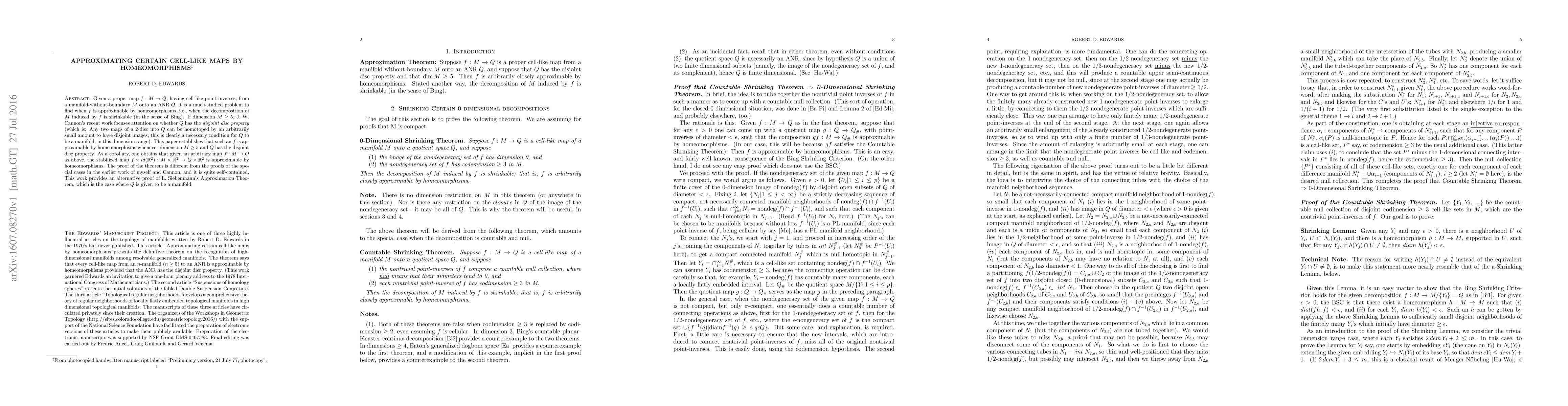 Given a proper map f : M $\rightarrow$ Q, having cell-like point-inverses, from a manifold-without-boundary M onto an ANR Q, it is a much-studied problem to find when f is approximable by homeomorphisms, i.e., when the decomposition of M induced by f is shrinkable (in the sense of Bing). If dimension M $\geq$ 5, J. W. Cannon's recent work focuses attention on whether Q has the disjoint disc property (which is: Any two maps of a 2-disc into Q can be homotoped by an arbitrarily small amount to have disjoint images; this is clearly a necessary condition for Q to be a manifold, in this dimension range). This paper establishes that such an f is approximable by homeomorphisms whenever dimension M $\geq$ 5 and Q has the disjoint disc property. As a corollary, one obtains that given an arbitrary map f : M $\rightarrow$ Q as above, the stabilized map f $\times$ id($\mathbb{R}^{2}$) : M $\times$ $\mathbb{R}^{2}$ -> Q $\times$ $\mathbb{R}^{2}$ is approximable by homeomorphisms. The proof of the theorem is different from the proofs of the special cases in the earlier work of myself and Cannon, and it is quite self-contained. This work provides an alternative proof of L. Siebenmann's Approximation Theorem, which is the case where Q is given to be a manifold.