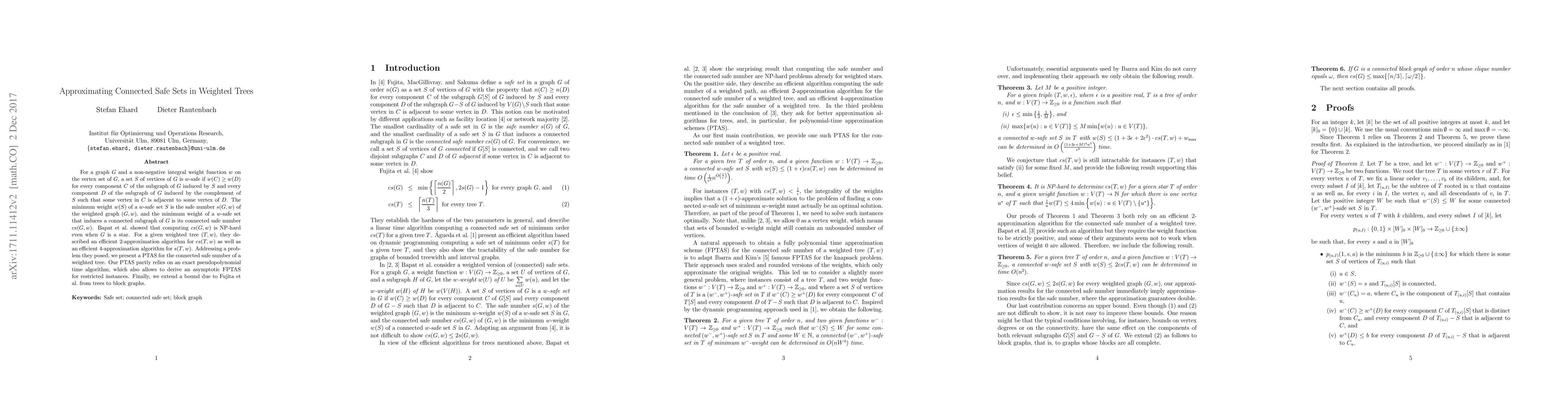 For a graph $G$ and a non-negative integral weight function $w$ on the vertex set of $G$, a set $S$ of vertices of $G$ is $w$-safe if $w(C)\geq w(D)$ for every component $C$ of the subgraph of $G$ induced by $S$ and every component $D$ of the subgraph of $G$ induced by the complement of $S$ such that some vertex in $C$ is adjacent to some vertex of $D$. The minimum weight $w(S)$ of a $w$-safe set $S$ is the safe number $s(G,w)$ of the weighted graph $(G,w)$, and the minimum weight of a $w$-safe set that induces a connected subgraph of $G$ is its connected safe number $cs(G,w)$. Bapat et al. showed that computing $cs(G,w)$ is NP-hard even when $G$ is a star. For a given weighted tree $(T,w)$, they described an efficient $2$-approximation algorithm for $cs(T,w)$ as well as an efficient $4$-approximation algorithm for $s(T,w)$. Addressing a problem they posed, we present a PTAS for the connected safe number of a weighted tree. Our PTAS partly relies on an exact pseudopolynomial time algorithm, which also allows to derive an asymptotic FPTAS for restricted instances. Finally, we extend a bound due to Fujita et al. from trees to block graphs.