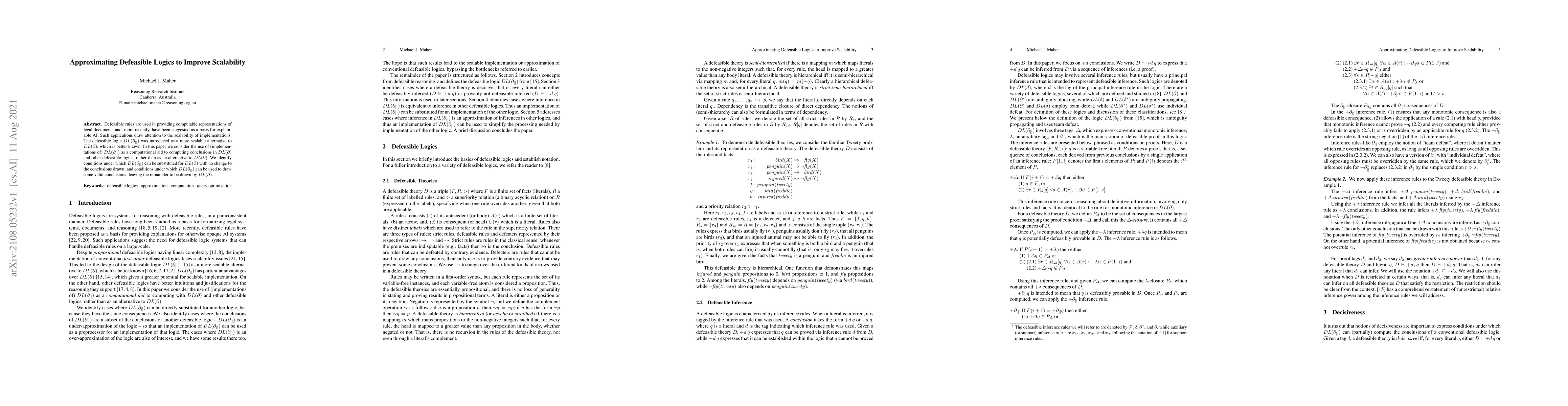 This paper explores the use of the more scalable defeasible logic $DL(\partial_{||})$ to approximate $DL(\partial)$ without altering conclusions, identifying conditions for its substitution and partial use to improve scalability in applications like legal document representation and explainable AI.