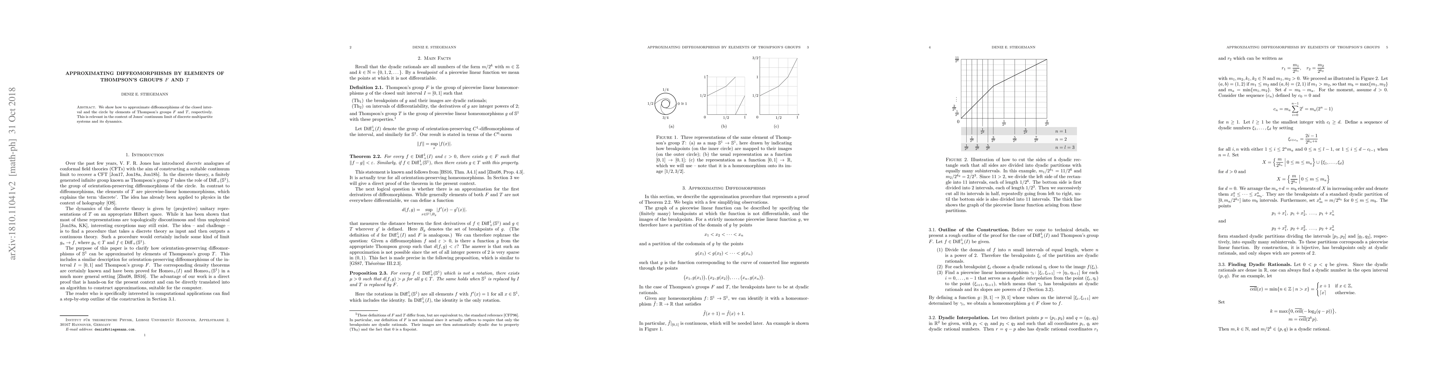 We show how to approximate diffeomorphisms of the closed interval and the circle by elements of Thompson's groups $F$ and $T$, respectively. This is relevant in the context of Jones' continuum limit of discrete multipartite systems and its dynamics.