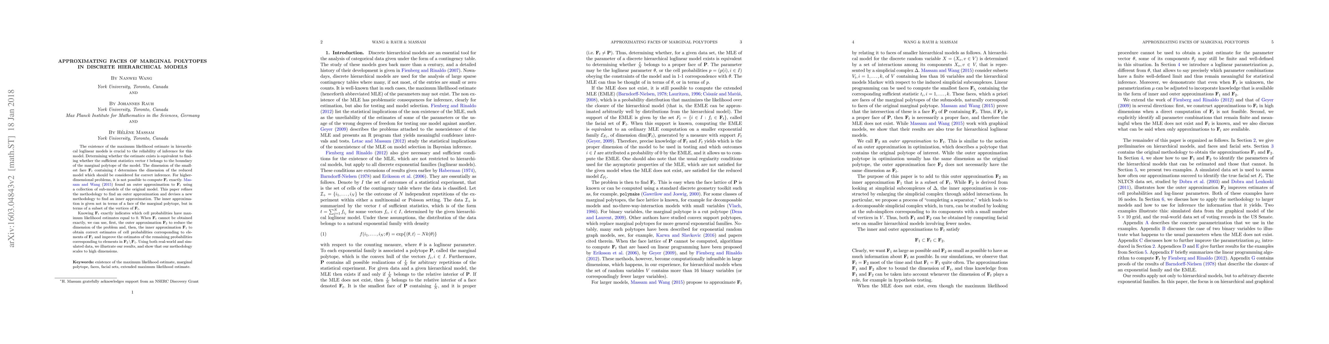 This paper develops a new methodology to approximate faces of marginal polytopes in discrete hierarchical models, providing a way to determine the reliability of maximum likelihood estimates.