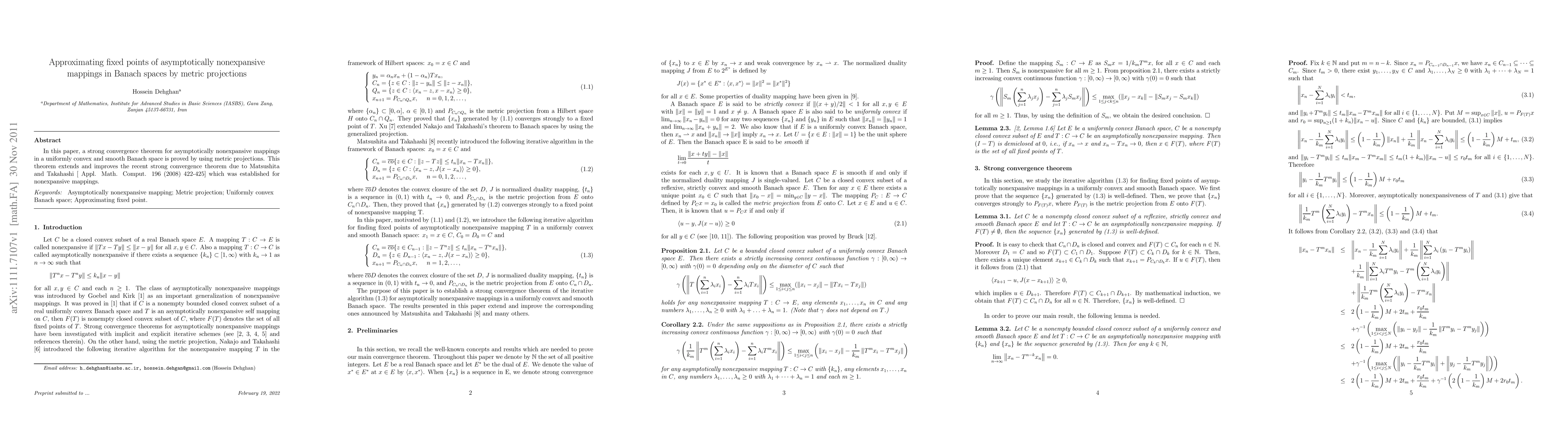 This paper proves a strong convergence theorem for asymptotically nonexpansive mappings in uniformly convex and smooth Banach spaces using metric projections, extending and improving Matsushita and Takahashi's prior result for nonexpansive mappings.