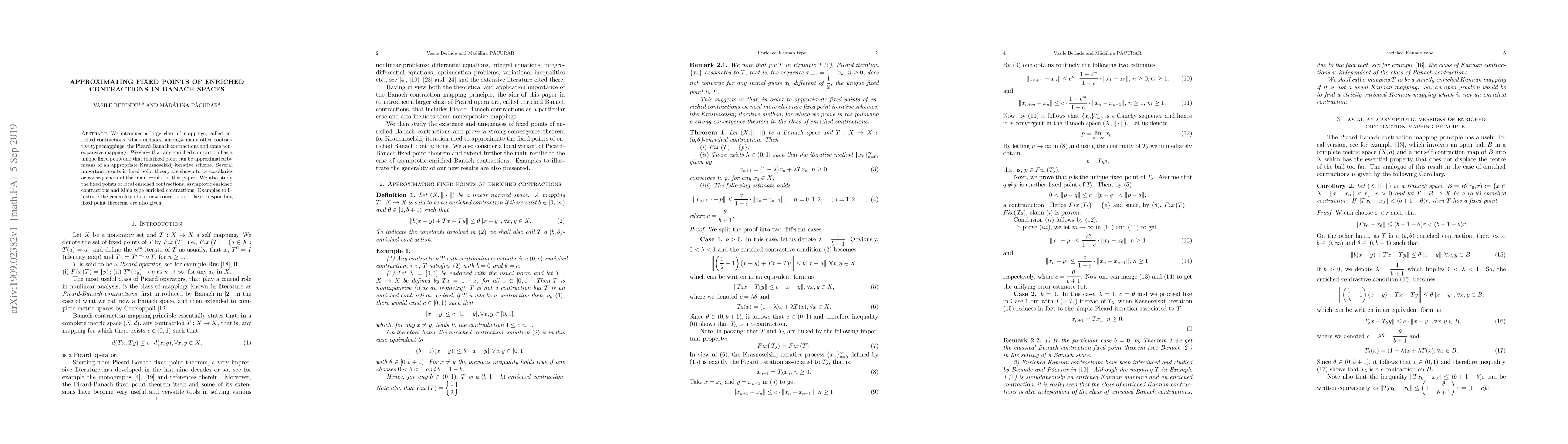 This paper introduces enriched contractions, a broad class of contractive mappings encompassing Picard-Banach contractions and some nonexpansive mappings. It demonstrates the existence of a unique fixed point for any enriched contraction, which can be approximated via a Kransnoselskij iterative scheme, and explores various types of enriched contractions with illustrative examples.