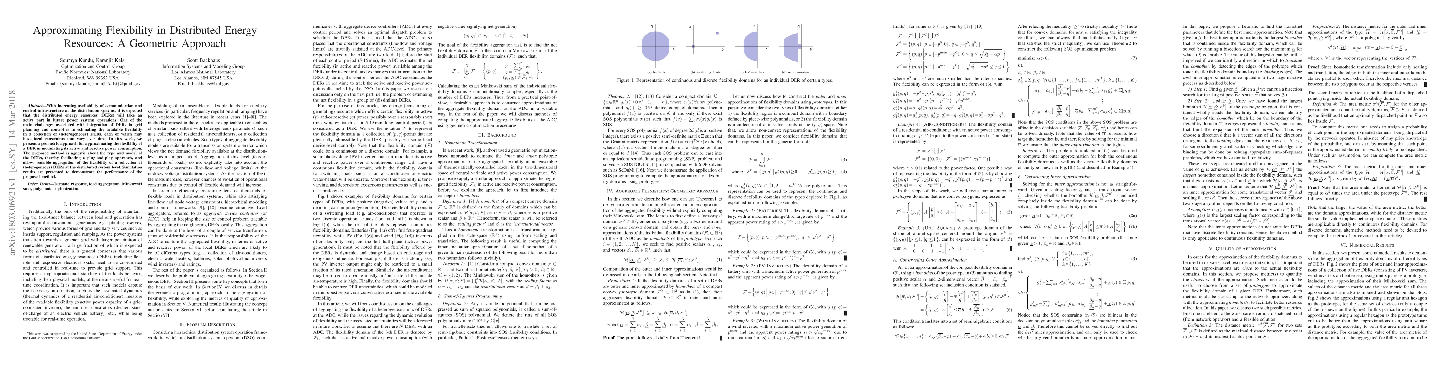 With increasing availability of communication and control infrastructure at the distribution systems, it is expected that the distributed energy resources (DERs) will take an active part in future power systems operations. One of the main challenges associated with integration of DERs in grid planning and control is in estimating the available flexibility in a collection of (heterogeneous) DERs, each of which may have local constraints that vary over time. In this work, we present a geometric approach for approximating the flexibility of a DER in modulating its active and reactive power consumption. The proposed method is agnostic about the type and model of the DERs, thereby facilitating a plug-and-play approach, and allows scalable aggregation of the flexibility of a collection of (heterogeneous) DERs at the distributed system level. Simulation results are presented to demonstrate the performance of the proposed method.