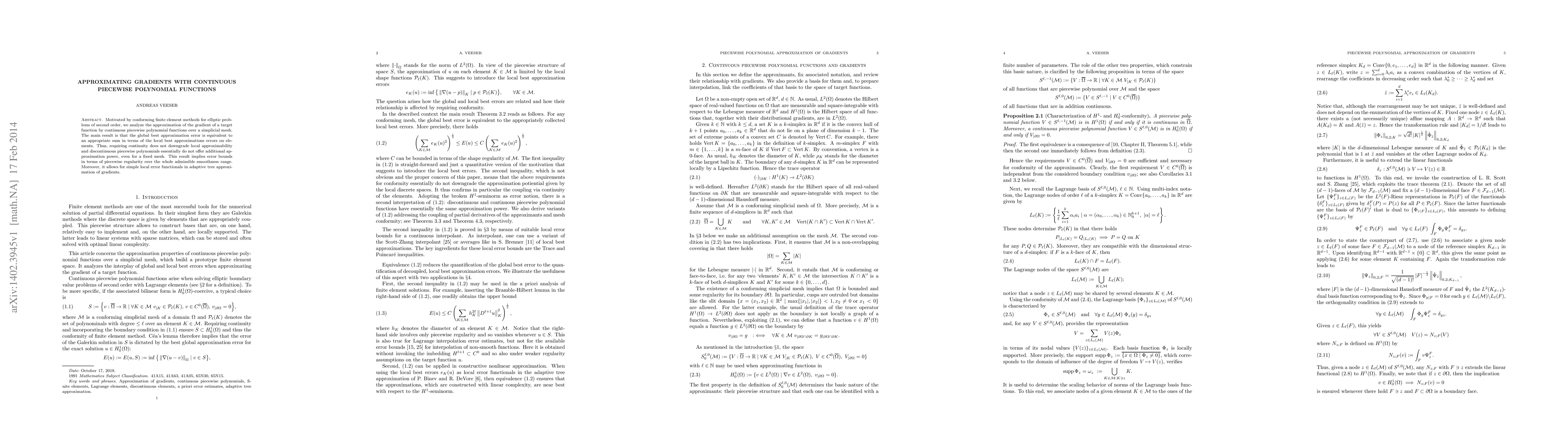This paper examines the approximation of gradient functions using continuous piecewise polynomial functions over simplicial meshes, showing that global approximation error is equivalent to a sum of local errors. It concludes that continuity does not compromise local approximability, and discontinuous piecewise polynomials do not provide additional benefits.