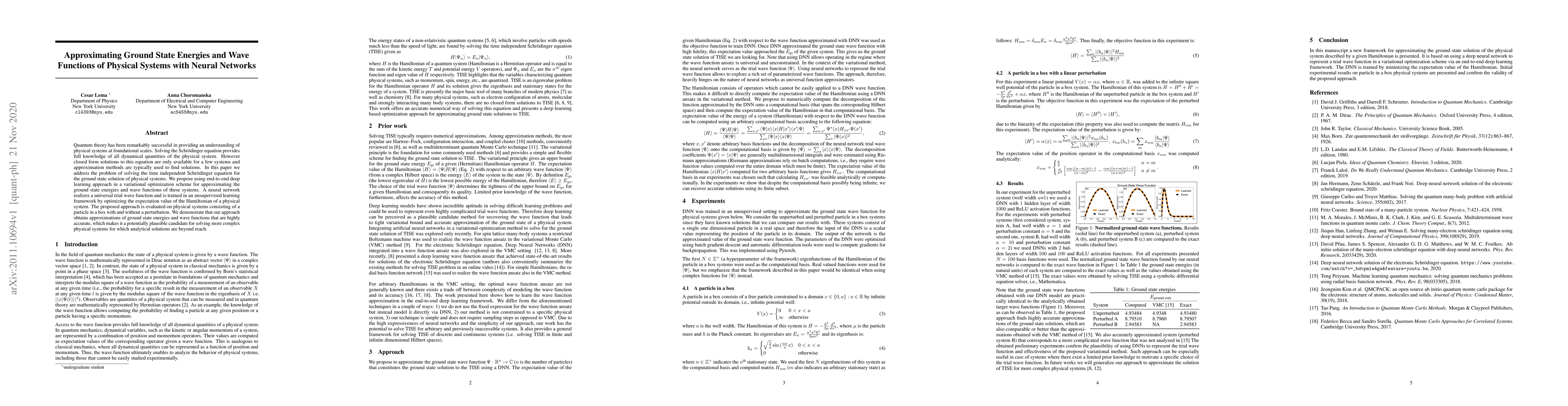 Researchers propose using neural networks to approximate ground state energies and wave functions of physical systems, achieving highly accurate results in simple cases and paving the way for more complex systems.