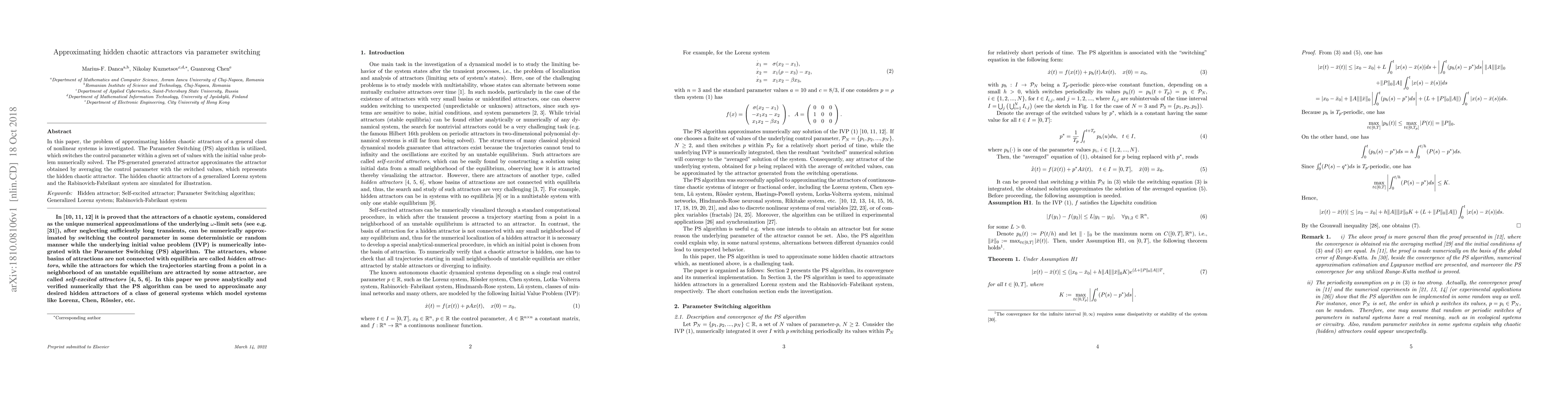 This paper investigates the approximation of hidden chaotic attractors using the Parameter Switching (PS) algorithm, demonstrating its effectiveness through simulations of the generalized Lorenz system and the Rabinovich-Fabrikant system. The PS algorithm switches control parameters to numerically solve initial value problems, approximating hidden chaotic attractors.