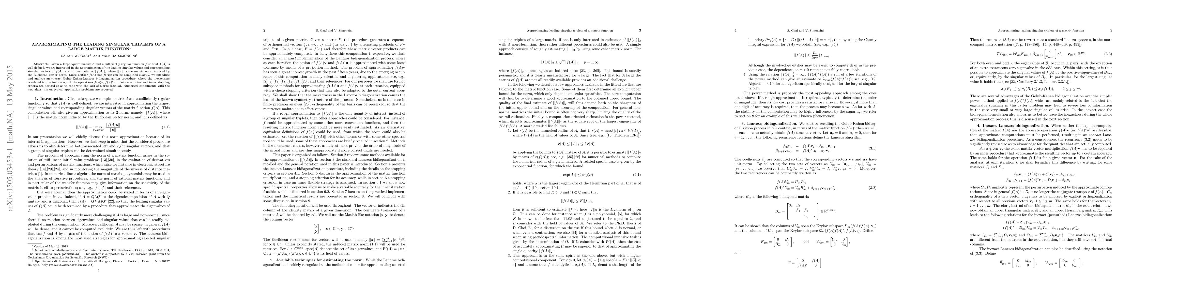 Researchers developed an algorithm to approximate the leading singular values and vectors of a function of a large matrix, addressing computational limitations due to inexact operations.