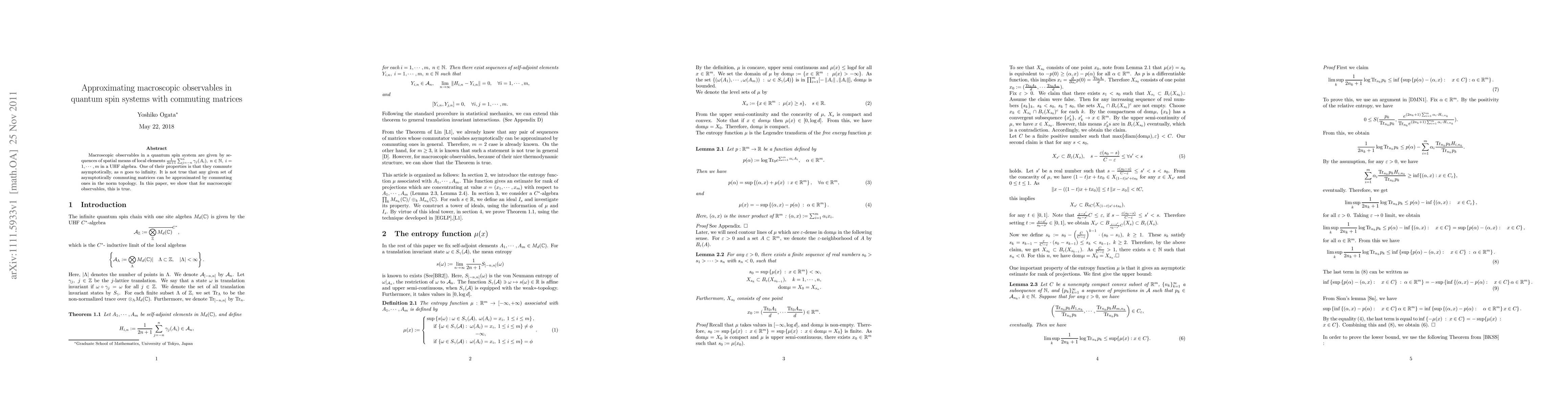 This paper demonstrates that macroscopic observables in quantum spin systems, which asymptotically commute, can be approximated by commuting matrices in norm topology, despite the general non-existence of such approximations for arbitrary sets of commuting matrices.
