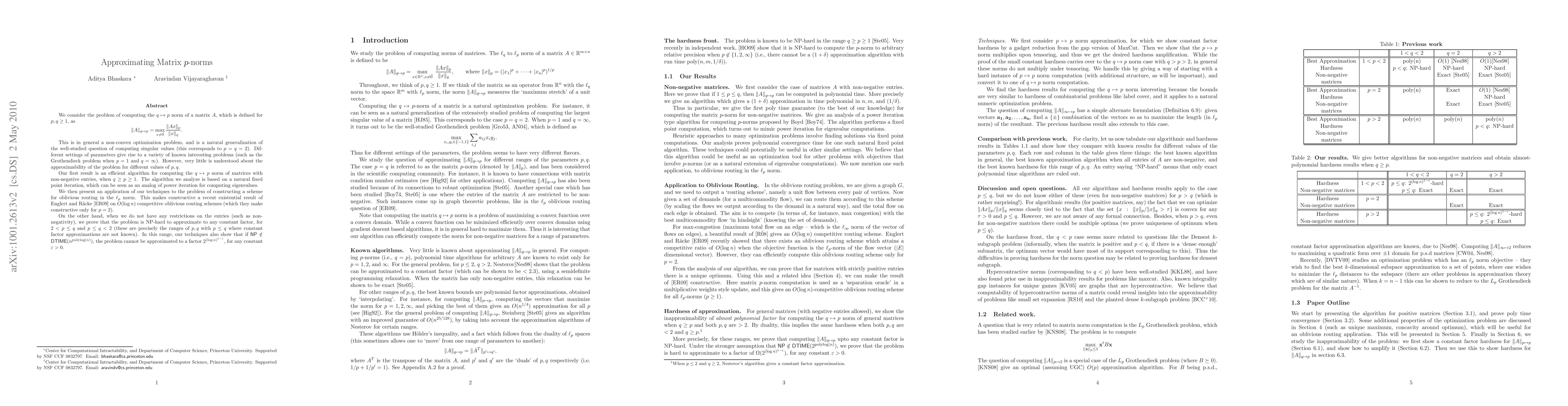 We consider the problem of computing the q->p norm of a matrix A, which is defined for p,q \ge 1, as |A|_{q->p} = max_{x !=0 } |Ax|_p / |x|_q. This is in general a non-convex optimization problem, and is a natural generalization of the well-studied question of computing singular values (this corresponds to p=q=2). Different settings of parameters give rise to a variety of known interesting problems (such as the Grothendieck problem when p=1 and q=\infty). However, very little is understood about the approximability of the problem for different values of p,q. Our first result is an efficient algorithm for computing the q->p norm of matrices with non-negative entries, when q \ge p \ge 1. The algorithm we analyze is based on a natural fixed point iteration, which can be seen as an analog of power iteration for computing eigenvalues. We then present an application of our techniques to the problem of constructing a scheme for oblivious routing in the l_p norm. This makes constructive a recent existential result of Englert and R\"acke [ER] on O(log n)-competitive oblivious routing schemes (which they make constructive only for p=2). On the other hand, when we do not have any restrictions on the entries (such as non-negativity), we prove that the problem is NP-hard to approximate to any constant factor, for 2 < p \le q, and p \le q < 2 (these are precisely the ranges of p,q with p\le q, where constant factor approximations are not known). In this range, our techniques also show that if NP does not have quasi-polynomial time algorithms, the q->p cannot be approximated to a factor 2^{(log n)^{1-eps}}, for any \eps>0.