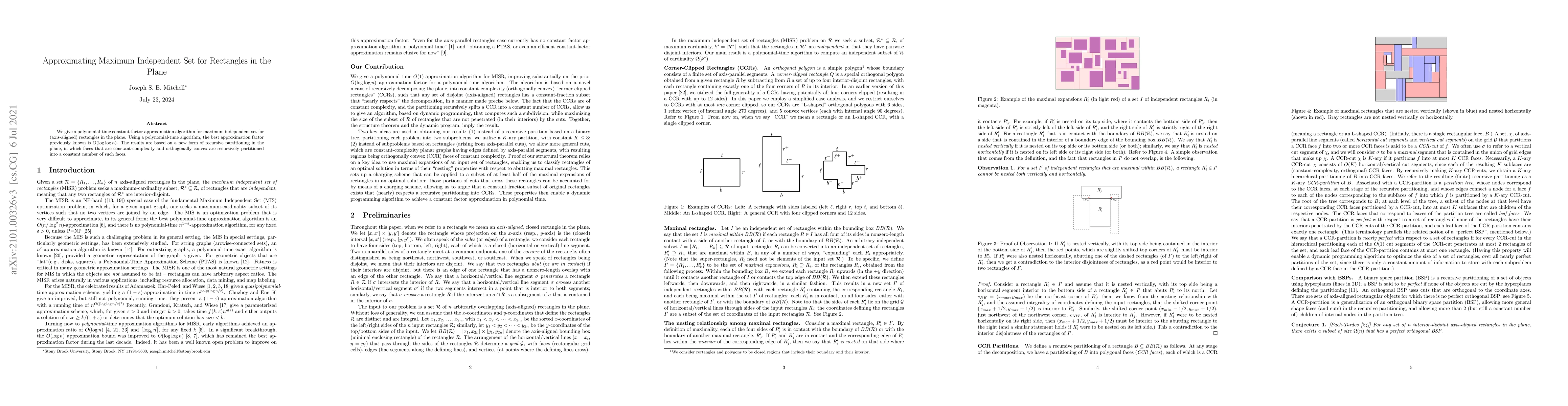 This paper presents a polynomial-time constant-factor approximation algorithm for finding the maximum independent set of rectangles in the plane, improving upon previous $O(\log\log n)$ approximation methods. The approach utilizes a novel recursive partitioning technique that divides constant-complexity, orthogonally convex regions into a fixed number of smaller parts.