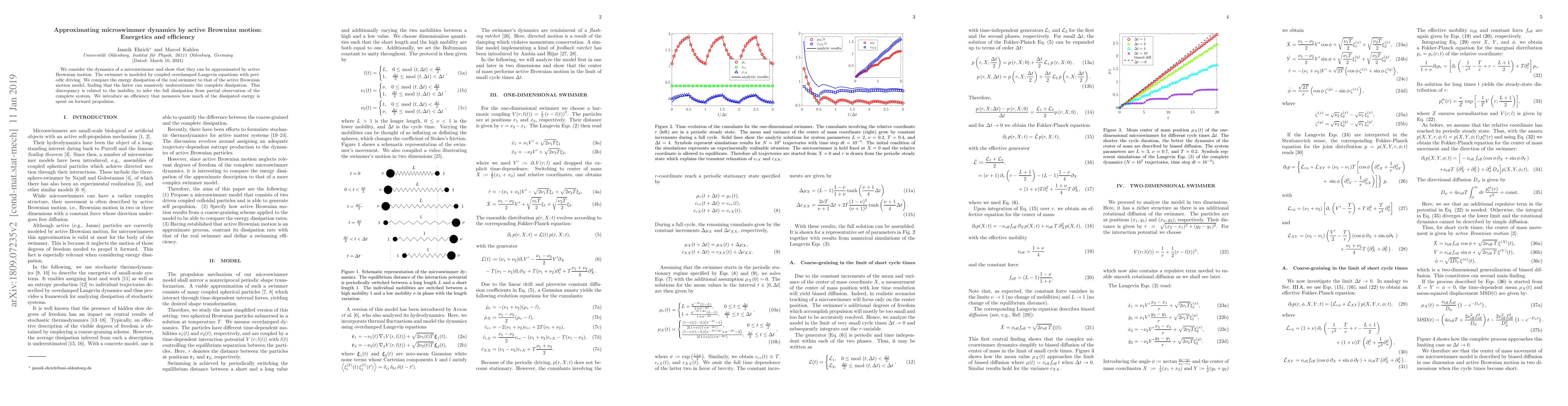 We consider the dynamics of a microswimmer and show that they can be approximated by active Brownian motion. The swimmer is modeled by coupled overdamped Langevin equations with periodic driving. We compare the energy dissipation of the real swimmer to that of the active Brownian motion model, finding that the latter can massively underestimate the complete dissipation. This discrepancy is related to the inability to infer the full dissipation from partial observation of the complete system. We introduce an efficiency that measures how much of the dissipated energy is spent on forward propulsion.