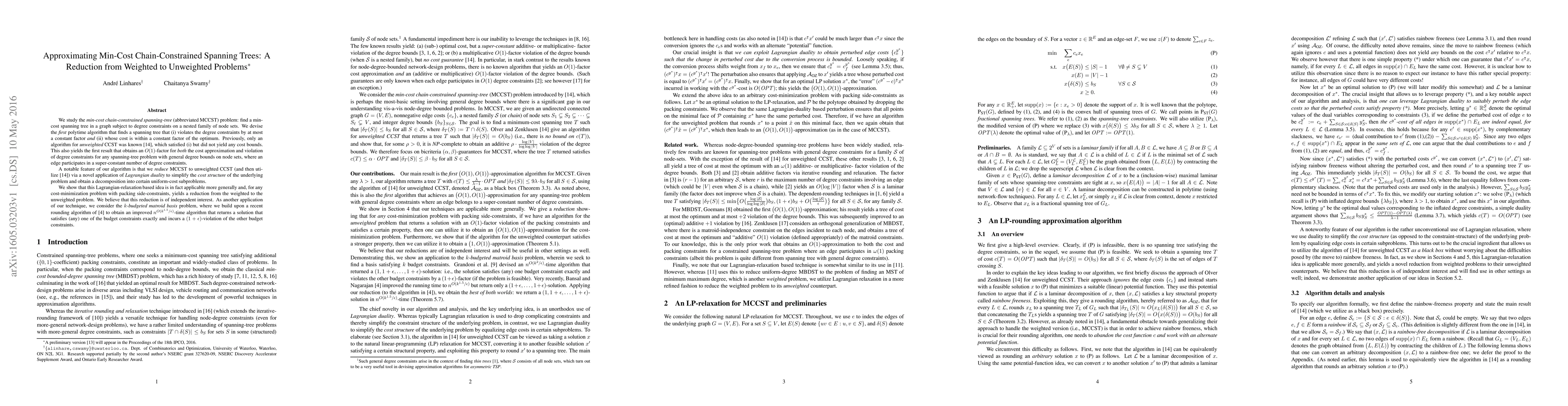 Researchers developed a polytime algorithm to approximate min-cost chain-constrained spanning trees with both cost bounds and degree constraints, reducing the problem from weighted to unweighted cases.