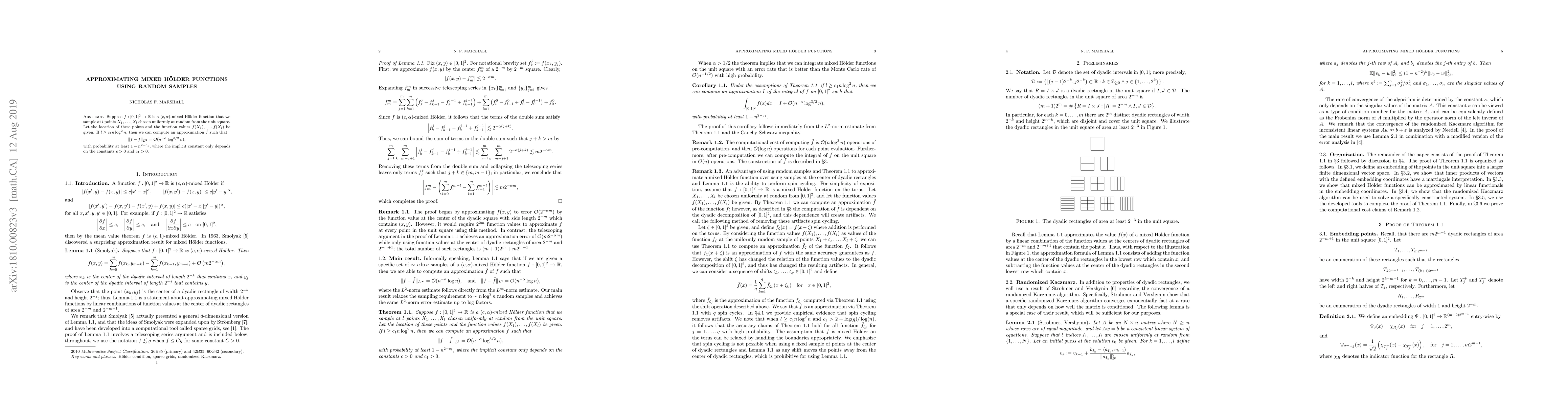 Suppose $f : [0,1]^2 \rightarrow \mathbb{R}$ is a $(c,\alpha)$-mixed H\"older function that we sample at $l$ points $X_1,\ldots,X_l$ chosen uniformly at random from the unit square. Let the location of these points and the function values $f(X_1),\ldots,f(X_l)$ be given. If $l \ge c_1 n \log^2 n$, then we can compute an approximation $\tilde{f}$ such that $$ \|f - \tilde{f} \|_{L^2} = \mathcal{O}(n^{-\alpha} \log^{3/2} n), $$ with probability at least $1 - n^{2 -c_1}$, where the implicit constant only depends on the constants $c > 0$ and $c_1 > 0$.