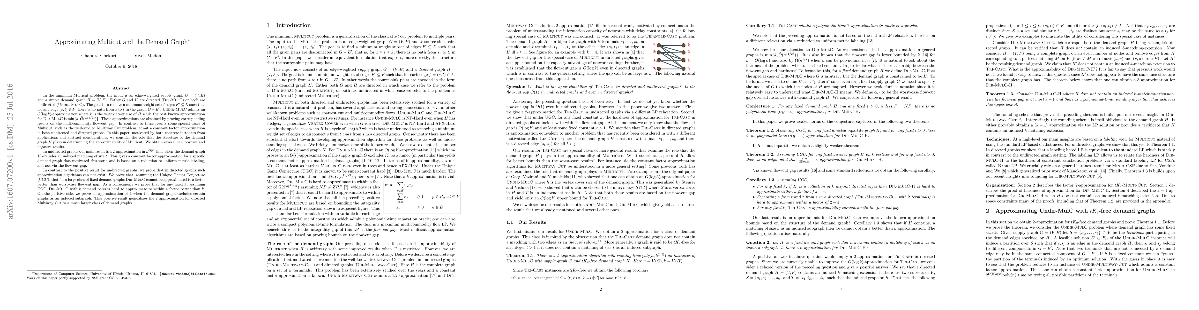 In the minimum Multicut problem, the input is an edge-weighted supply graph $G=(V,E)$ and a simple demand graph $H=(V,F)$. Either $G$ and $H$ are directed (DMulC) or both are undirected (UMulC). The goal is to remove a minimum weight set of edges in $G$ such that there is no path from $s$ to $t$ in the remaining graph for any $(s,t) \in F$. UMulC admits an $O(\log k)$-approximation where $k$ is the vertex cover size of $H$ while the best known approximation for DMulC is $\min\{k, \tilde{O}(n^{11/23})\}$. These approximations are obtained by proving corresponding results on the multicommodity flow-cut gap. In contrast to these results some special cases of Multicut, such as the well-studied Multiway Cut problem, admit a constant factor approximation in both undirected and directed graphs. Motivated by both concrete instances from applications and abstract considerations, we consider the role that the structure of the demand graph $H$ plays in determining the approximability of Multicut. In undirected graphs our main result is a $2$-approximation in $n^{O(t)}$ time when the demand graph $H$ excludes an induced matching of size $t$. This gives a constant factor approximation for a specific demand graph that motivated this work. In contrast to undirected graphs, we prove that in directed graphs such approximation algorithms can not exist. Assuming the Unique Games Conjecture (UGC), for a large class of fixed demand graphs DMulC cannot be approximated to a factor better than worst-case flow-cut gap. As a consequence we prove that for any fixed $k$, assuming UGC, DMulC with $k$ demand pairs is hard to approximate to within a factor better than $k$. On the positive side, we prove an approximation of $k$ when the demand graph excludes certain graphs as an induced subgraph. This generalizes the Multiway Cut result to a much larger class of demand graphs.