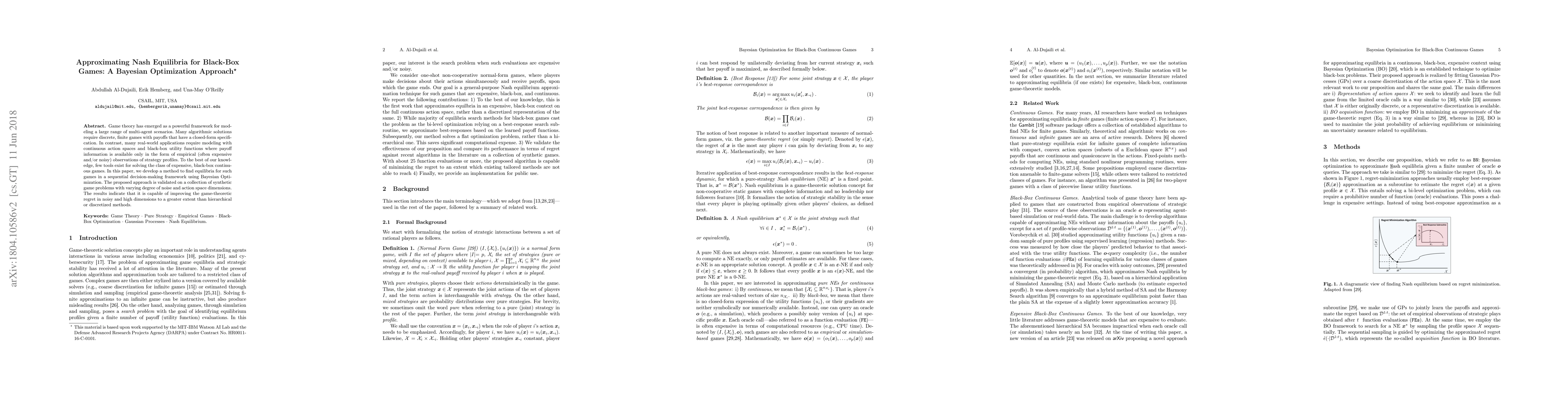 Game theory has emerged as a powerful framework for modeling a large range of multi-agent scenarios. Many algorithmic solutions require discrete, finite games with payoffs that have a closed-form specification. In contrast, many real-world applications require modeling with continuous action spaces and black-box utility functions where payoff information is available only in the form of empirical (often expensive and/or noisy) observations of strategy profiles. To the best of our knowledge, few tools exist for solving the class of expensive, black-box continuous games. In this paper, we develop a method to find equilibria for such games in a sequential decision-making framework using Bayesian Optimization. The proposed approach is validated on a collection of synthetic game problems with varying degree of noise and action space dimensions. The results indicate that it is capable of improving the maximum regret in noisy and high dimensions to a greater extent than hierarchical or discretized methods.