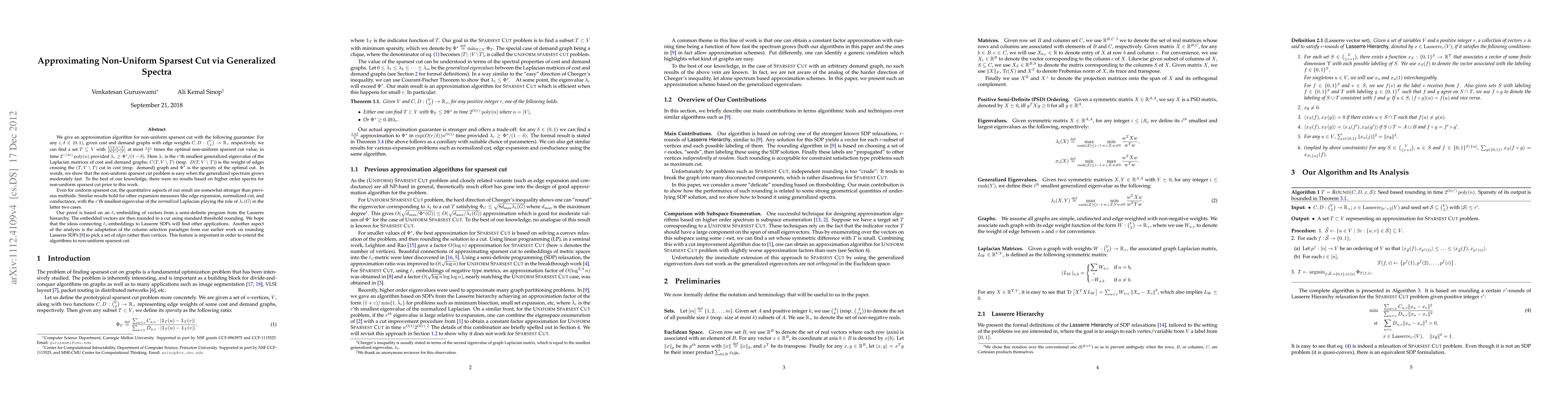 This paper presents an approximation algorithm for non-uniform sparsest cut, achieving a ratio within a factor of \( \frac{1+\epsilon}{\delta} \) of the optimal value in polynomial time. The algorithm leverages the generalized spectrum of Laplacian matrices, and its effectiveness hinges on the moderate growth rate of the \( r \)-th smallest generalized eigenvalue. The method also extends to other expansion measures using analogous eigenvalue-based criteria.