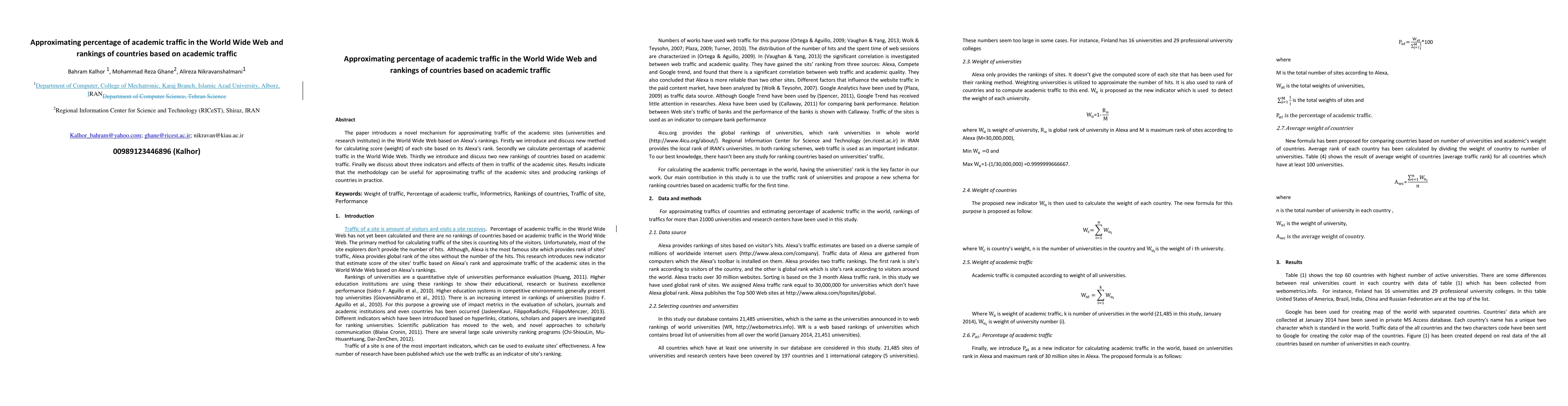 The paper proposes a novel method to estimate the percentage of academic traffic on the World Wide Web using Alexa rankings, and introduces new country rankings based on academic traffic. The results suggest the methodology is practical for approximating academic site traffic and generating relevant country rankings.