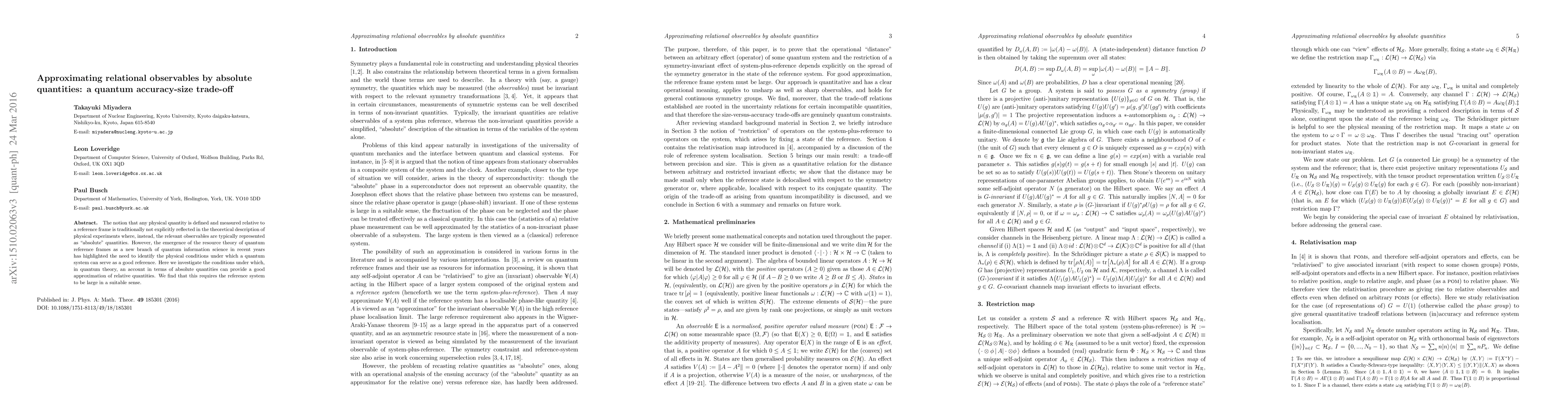 The notion that any physical quantity is defined and measured relative to a reference frame is traditionally not explicitly reflected in the theoretical description of physical experiments where, instead, the relevant observables are typically represented as "absolute" quantities. However, the emergence of the resource theory of quantum reference frames as a new branch of quantum information science in recent years has highlighted the need to identify the physical conditions under which a quantum system can serve as a good reference. Here we investigate the conditions under which, in quantum theory, an account in terms of absolute quantities can provide a good approximation of relative quantities. We find that this requires the reference system to be large in a suitable sense.