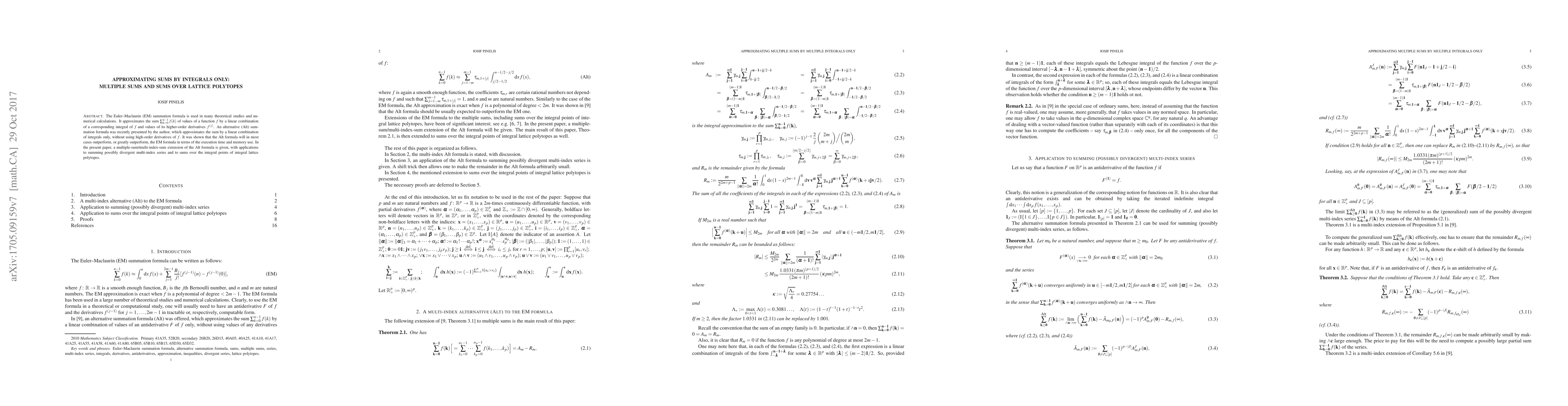 This paper introduces an alternative (Alt) summation formula that approximates sums using only integrals, without high-order derivatives, and demonstrates its efficiency over the Euler-Maclaurin formula. It extends this Alt formula to multiple sums and applies it to sums over lattice polytopes.