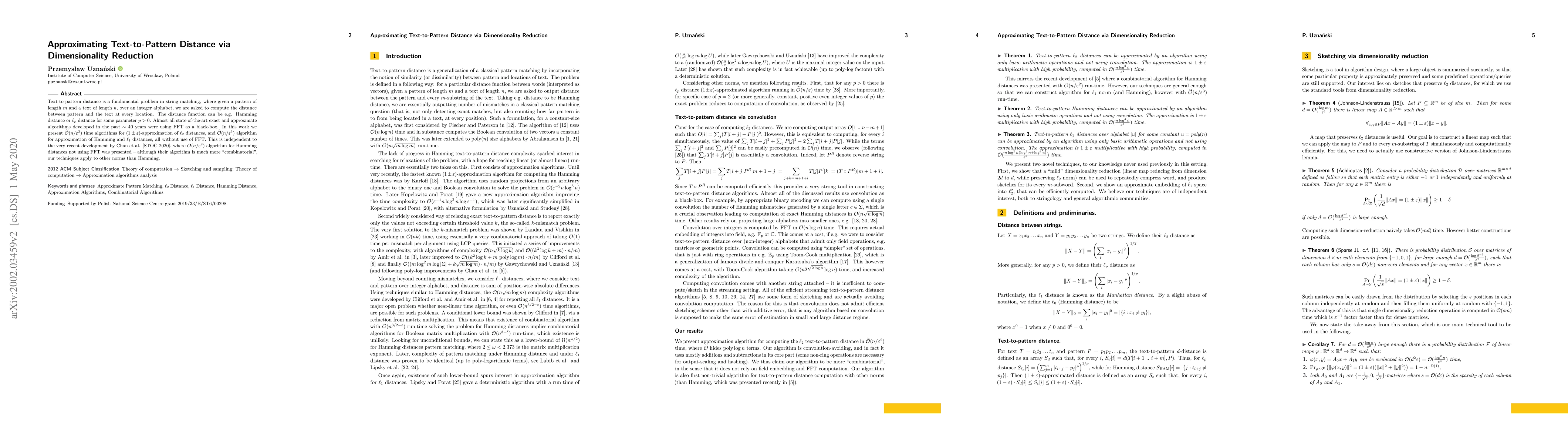 Researchers developed new algorithms to approximate distances between text patterns without using Fast Fourier Transform (FFT), achieving faster times for Hamming and l1 distances while maintaining comparable accuracy.
