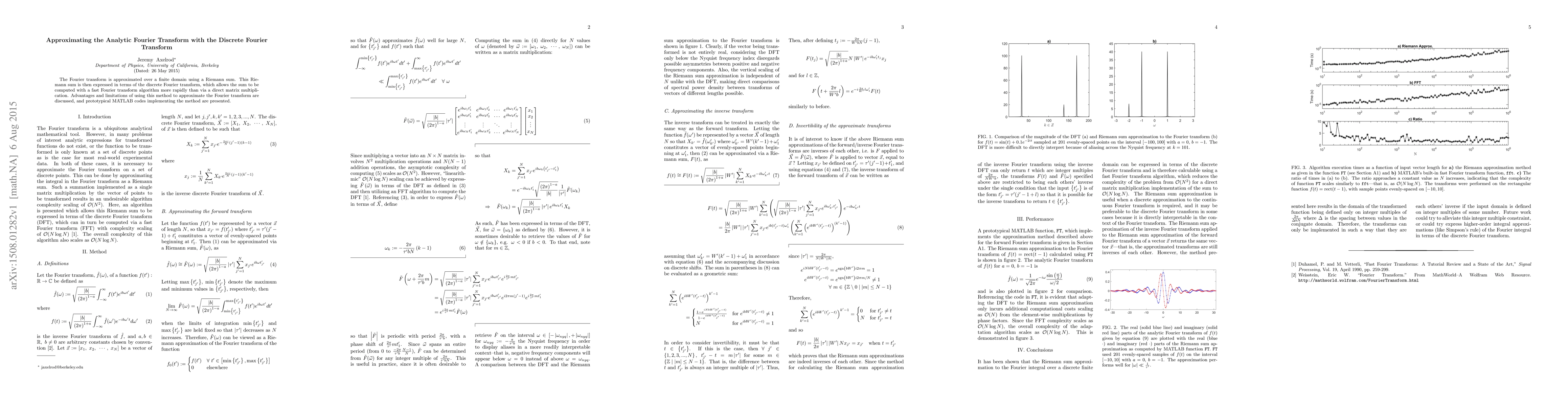 The paper proposes an efficient method for approximating the analytic Fourier transform using the discrete Fourier transform and fast Fourier transform algorithms. This approach provides faster computation compared to direct matrix multiplication, though it also discusses its limitations.
