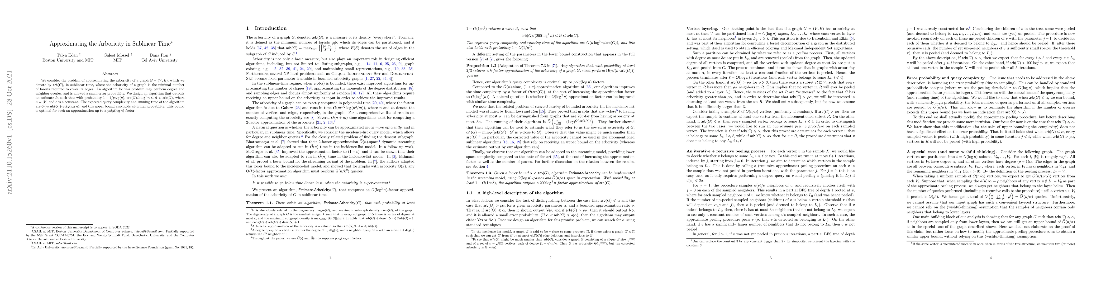 This paper presents an algorithm for approximating the arboricity of a graph in sublinear time, estimating the minimal number of forests required to cover its edges. The algorithm achieves an estimate within a polylogarithmic factor with high probability and optimal query complexity.