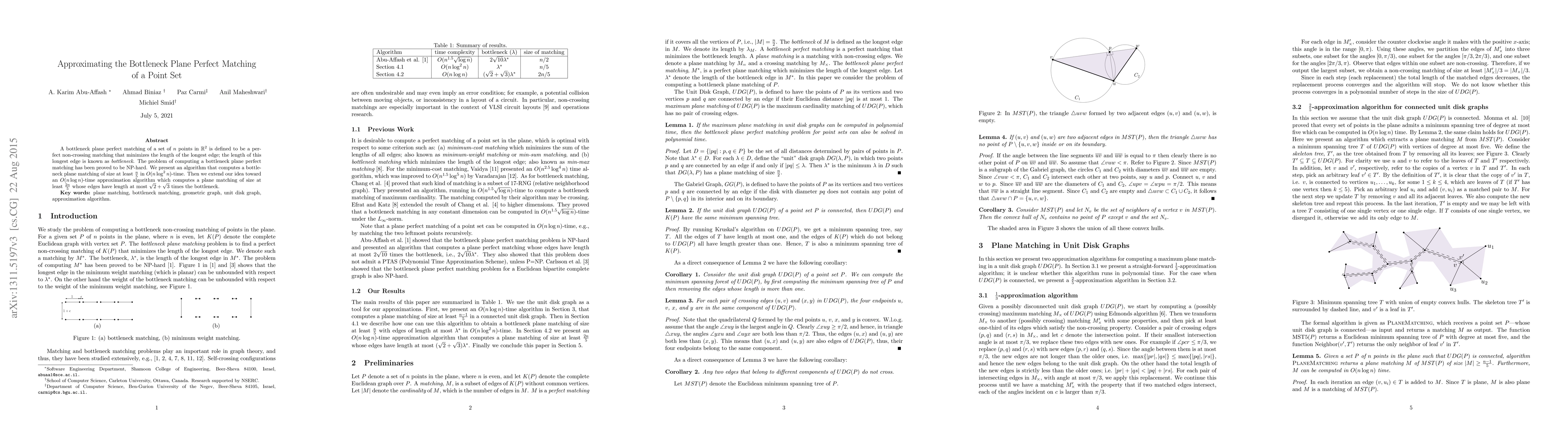 A bottleneck plane perfect matching of a set of $n$ points in $\mathbb{R}^2$ is defined to be a perfect non-crossing matching that minimizes the length of the longest edge; the length of this longest edge is known as {\em bottleneck}. The problem of computing a bottleneck plane perfect matching has been proved to be NP-hard. We present an algorithm that computes a bottleneck plane matching of size at least $\frac{n}{5}$ in $O(n \log^2 n)$-time. Then we extend our idea toward an $O(n\log n)$-time approximation algorithm which computes a plane matching of size at least $\frac{2n}{5}$ whose edges have length at most $\sqrt{2}+\sqrt{3}$ times the bottleneck.
