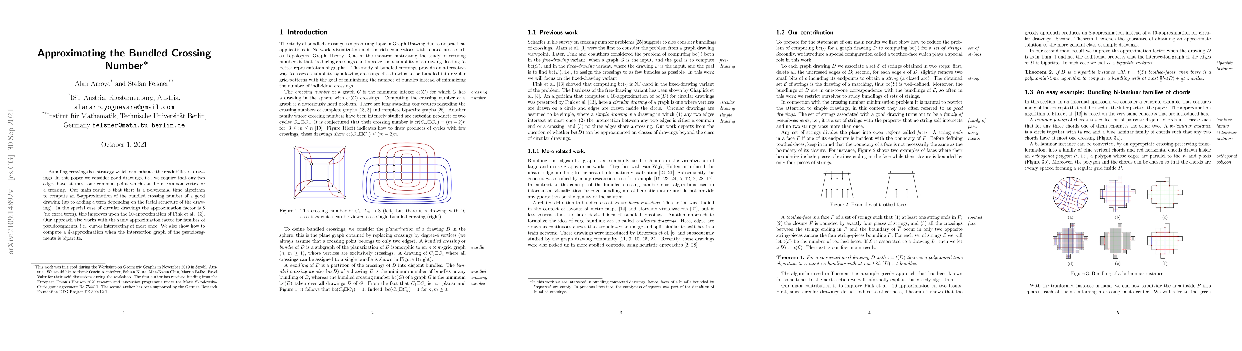 The paper introduces a polynomial time algorithm for computing an 8-approximation of the bundled crossing number of a good drawing, improving upon previous work for circular drawings where the approximation factor is 8 without extra terms.