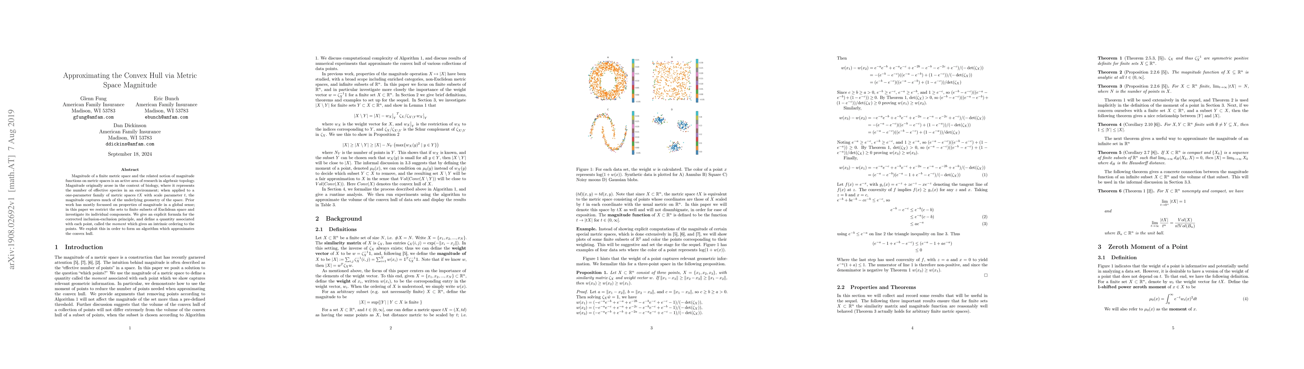 Magnitude of a finite metric space and the related notion of magnitude functions on metric spaces is an active area of research in algebraic topology. Magnitude originally arose in the context of biology, where it represents the number of effective species in an environment; when applied to a one-parameter family of metric spaces $tX$ with scale parameter $t$, the magnitude captures much of the underlying geometry of the space. Prior work has mostly focussed on properties of magnitude in a global sense; in this paper we restrict the sets to finite subsets of Euclidean space and investigate its individual components. We give an explicit formula for the corrected inclusion-exclusion principle, and define a quantity associated with each point, called the $\textit{moment}$ which gives an intrinsic ordering to the points. We exploit this in order to form an algorithm which approximates the convex hull.