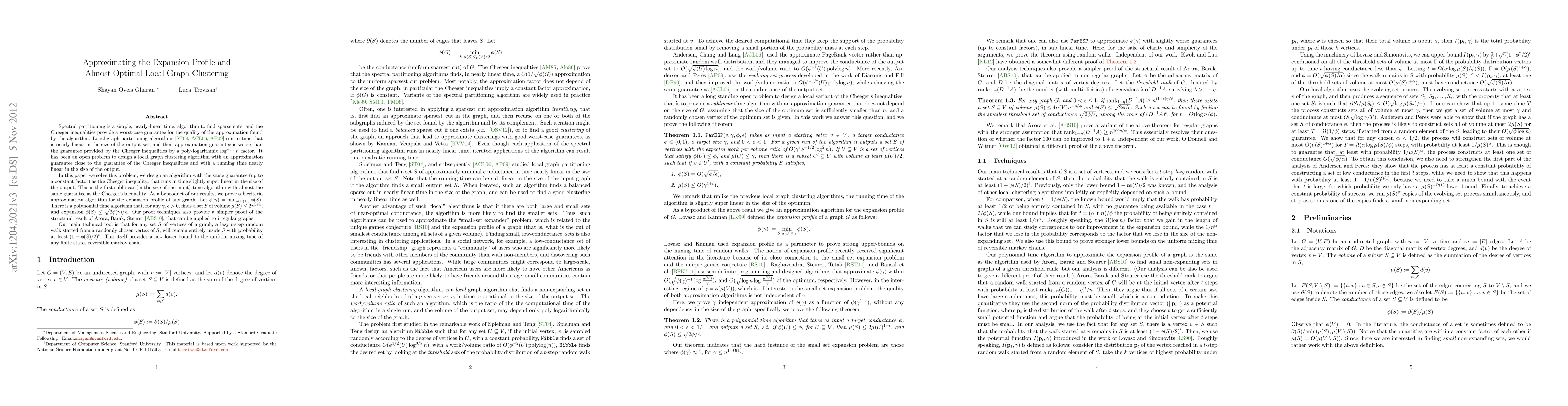 Spectral partitioning is a simple, nearly-linear time, algorithm to find sparse cuts, and the Cheeger inequalities provide a worst-case guarantee for the quality of the approximation found by the algorithm. Local graph partitioning algorithms [ST08,ACL06,AP09] run in time that is nearly linear in the size of the output set, and their approximation guarantee is worse than the guarantee provided by the Cheeger inequalities by a polylogarithmic $\log^{\Omega(1)} n$ factor. It has been a long standing open problem to design a local graph clustering algorithm with an approximation guarantee close to the guarantee of the Cheeger inequalities and with a running time nearly linear in the size of the output. In this paper we solve this problem; we design an algorithm with the same guarantee (up to a constant factor) as the Cheeger inequality, that runs in time slightly super linear in the size of the output. This is the first sublinear (in the size of the input) time algorithm with almost the same guarantee as the Cheeger's inequality. As a byproduct of our results, we prove a bicriteria approximation algorithm for the expansion profile of any graph. Let $\phi(\gamma) = \min_{\mu(S) \leq \gamma}\phi(S)$. There is a polynomial time algorithm that, for any $\gamma,\epsilon>0$, finds a set $S$ of measure $\mu(S)\leq 2\gamma^{1+\epsilon}$, and expansion $\phi(S)\leq \sqrt{2\phi(\gamma)/\epsilon}$. Our proof techniques also provide a simpler proof of the structural result of Arora, Barak, Steurer [ABS10], that can be applied to irregular graphs. Our main technical tool is that for any set $S$ of vertices of a graph, a lazy $t$-step random walk started from a randomly chosen vertex of $S$, will remain entirely inside $S$ with probability at least $(1-\phi(S)/2)^t$. This itself provides a new lower bound to the uniform mixing time of any finite states reversible markov chain.