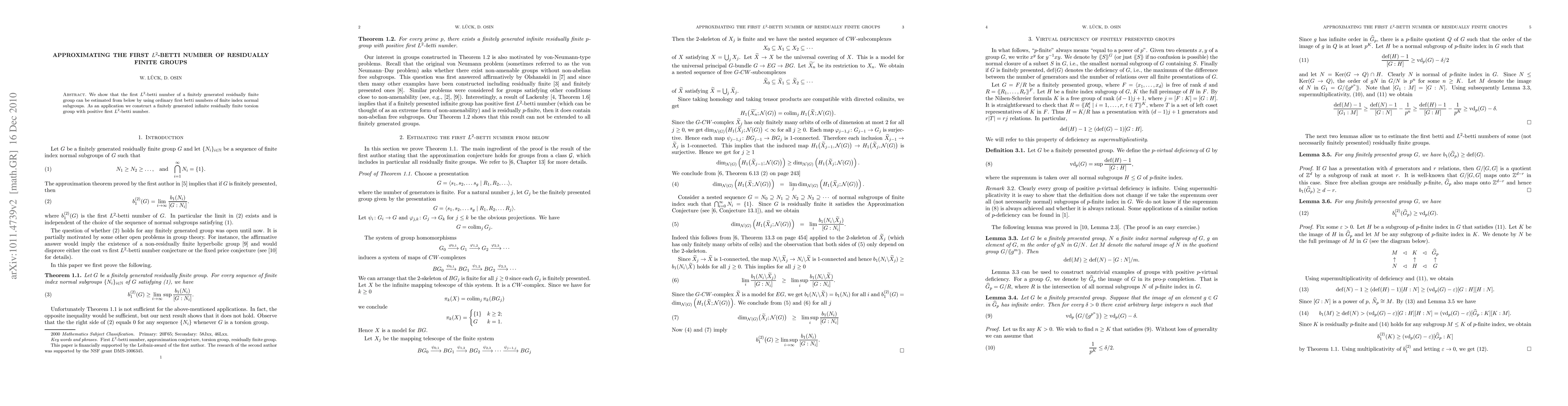 This paper demonstrates a method to estimate the first $L^2$-betti number of finitely generated residually finite groups using the first betti numbers of finite index normal subgroups. It also constructs an example of a finitely generated infinite residually finite torsion group with a positive first $L^2$-betti number.