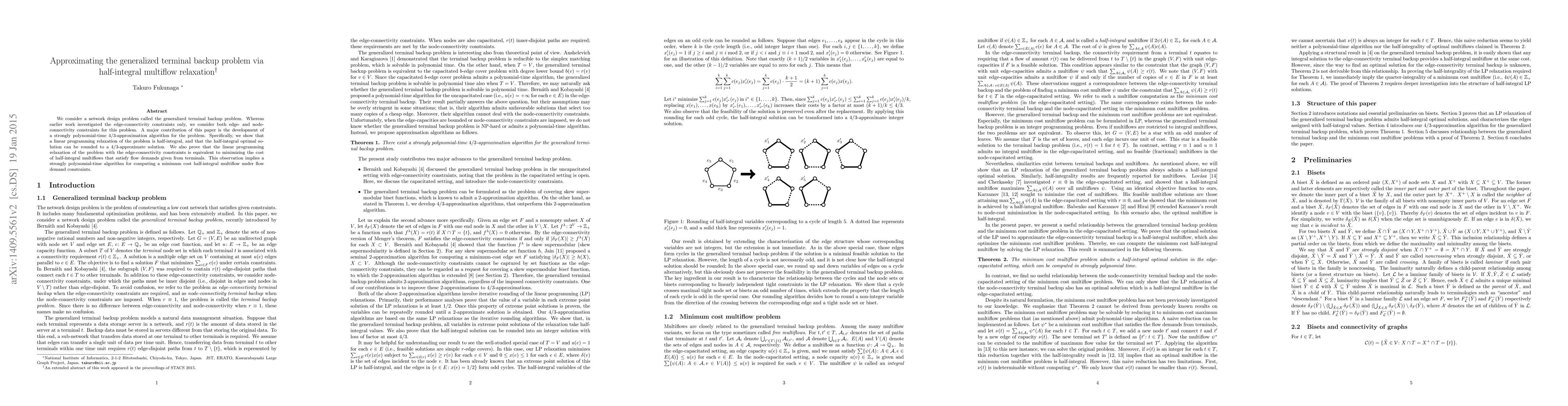 We consider a network design problem called the generalized terminal backup problem. Whereas earlier work investigated the edge-connectivity constraints only, we consider both edge- and node-connectivity constraints for this problem. A major contribution of this paper is the development of a strongly polynomial-time 4/3-approximation algorithm for the problem. Specifically, we show that a linear programming relaxation of the problem is half-integral, and that the half-integral optimal solution can be rounded to a 4/3-approximate solution. We also prove that the linear programming relaxation of the problem with the edge-connectivity constraints is equivalent to minimizing the cost of half-integral multiflows that satisfy flow demands given from terminals. This observation presents a strongly polynomial-time algorithm for computing a minimum cost half-integral multiflow under flow demand constraints.