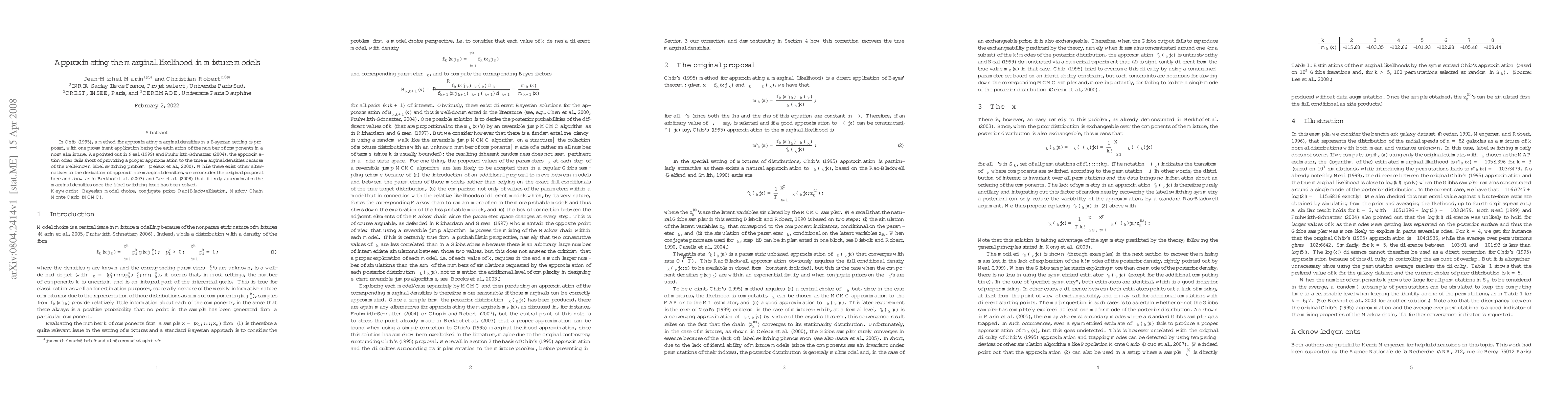 This paper revisits Chib's (1995) method for approximating marginal densities in Bayesian mixture models, demonstrating that it effectively estimates the number of components when the label switching problem is resolved, as suggested by Neal (1999) and Fruhwirth-Schnatter (2004). The authors argue that the original method provides accurate approximations once the label switching issue is addressed.