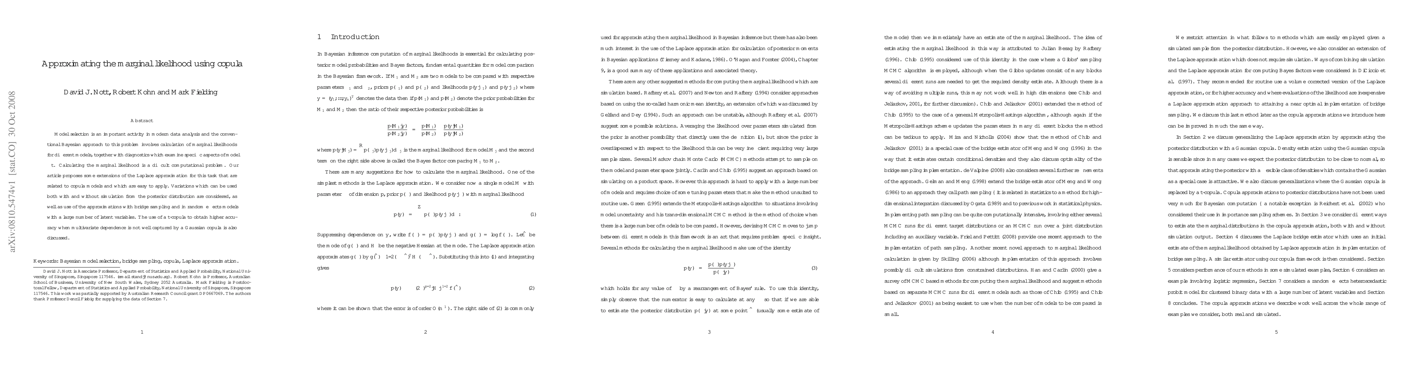 This paper proposes extensions of the Laplace approximation for calculating marginal likelihoods in model selection, leveraging copula models for improved accuracy. It introduces methods that are easy to apply, including variations for both simulated and non-simulated posterior distributions, and discusses the use of a t-copula for better handling of multivariate dependence.