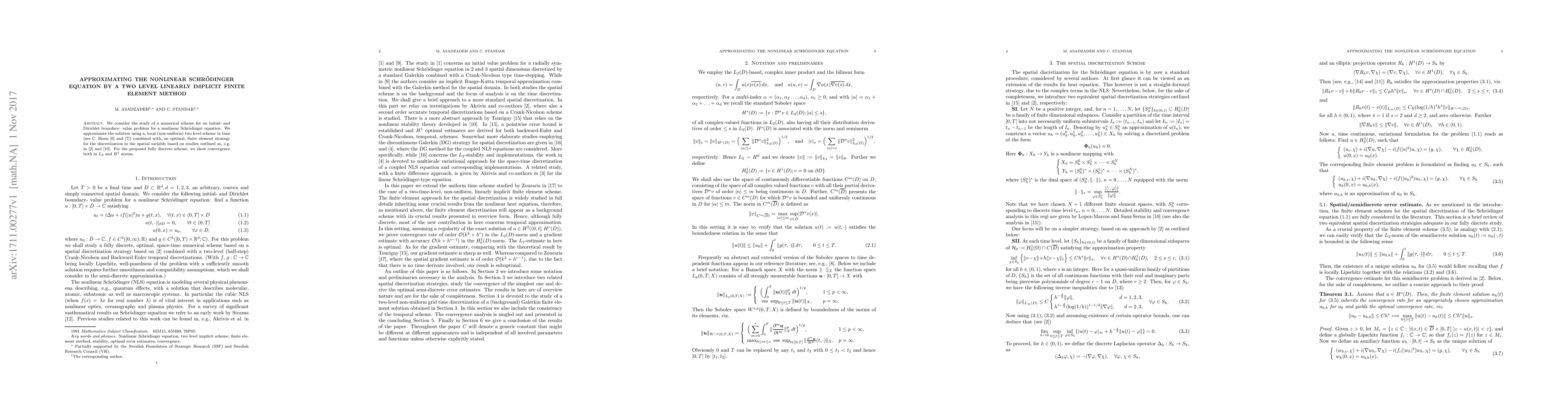 We consider the study of a numerical scheme for an initial- and Dirichlet boundary- value problem for a nonlinear Schr\"odinger equation. We approximate the solution using a, local (non-uniform) two level scheme in time (see C. Besse [6] and [7]) combined with, an optimal, finite element strategy for the discretization in the spatial variable based on studies outlined as, e.g. in [2] and [10]. For the proposed fully discrete scheme, we show convergence both in $L_2 $ and $H^1$ norms.