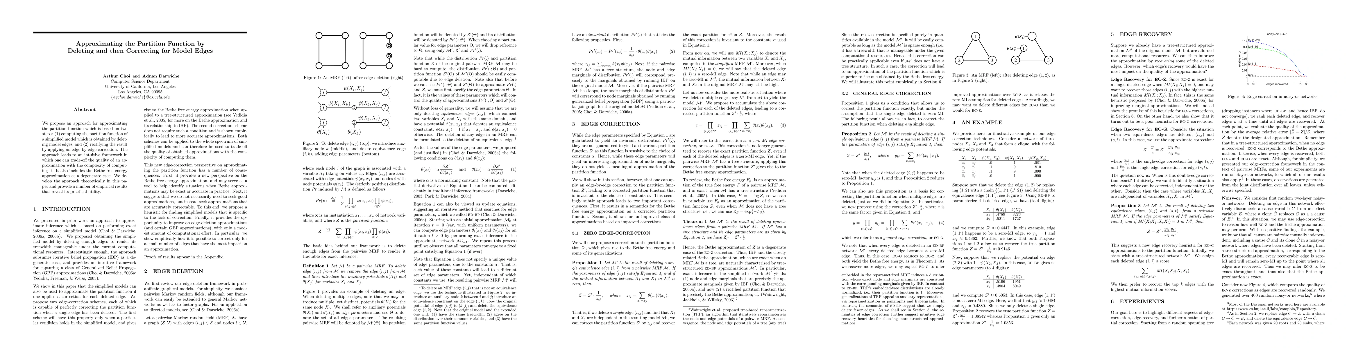 The paper proposes a two-step approach for approximating the partition function by first computing it for a simplified model obtained by deleting model edges, and then rectifying the result using an edge-by-edge correction.
