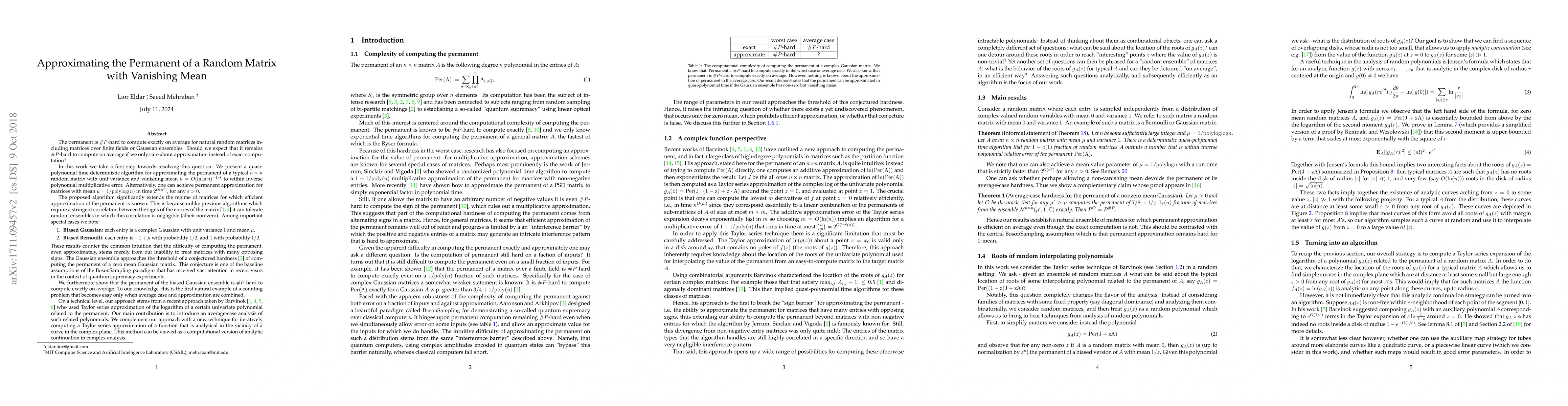 We show an algorithm for computing the permanent of a random matrix with vanishing mean in quasi-polynomial time. Among special cases are the Gaussian, and biased-Bernoulli random matrices with mean 1/lnln(n)^{1/8}. In addition, we can compute the permanent of a random matrix with mean 1/poly(ln(n)) in time 2^{O(n^{\eps})} for any small constant \eps>0. Our algorithm counters the intuition that the permanent is hard because of the "sign problem" - namely the interference between entries of a matrix with different signs. A major open question then remains whether one can provide an efficient algorithm for random matrices of mean 1/poly(n), whose conjectured #P-hardness is one of the baseline assumptions of the BosonSampling paradigm.
