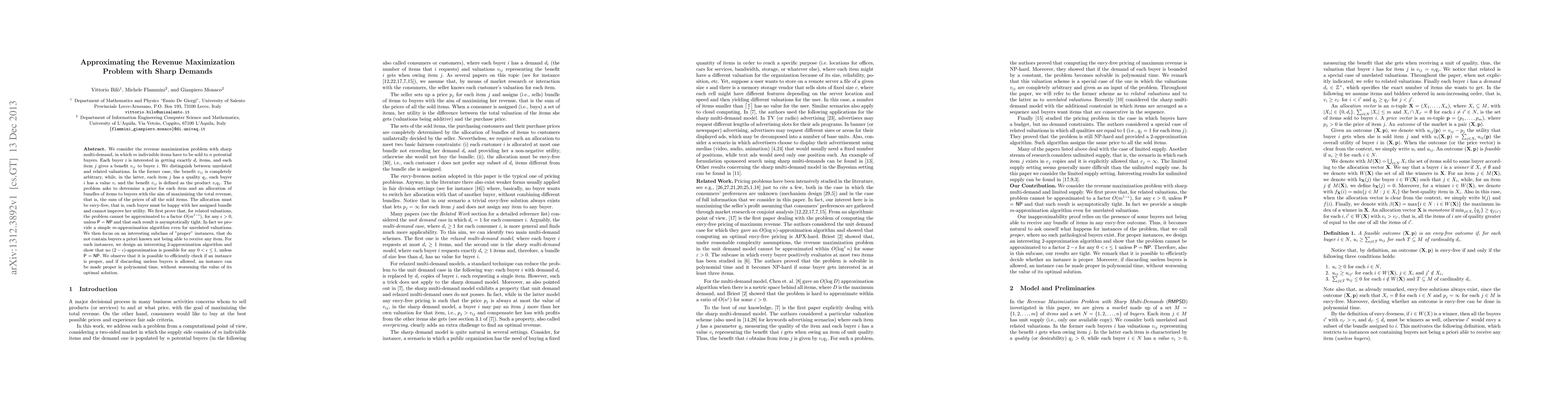 We consider the revenue maximization problem with sharp multi-demand, in which $m$ indivisible items have to be sold to $n$ potential buyers. Each buyer $i$ is interested in getting exactly $d_i$ items, and each item $j$ gives a benefit $v_{ij}$ to buyer $i$. We distinguish between unrelated and related valuations. In the former case, the benefit $v_{ij}$ is completely arbitrary, while, in the latter, each item $j$ has a quality $q_j$, each buyer $i$ has a value $v_i$ and the benefit $v_{ij}$ is defined as the product $v_i q_j$. The problem asks to determine a price for each item and an allocation of bundles of items to buyers with the aim of maximizing the total revenue, that is, the sum of the prices of all the sold items. The allocation must be envy-free, that is, each buyer must be happy with her assigned bundle and cannot improve her utility. We first prove that, for related valuations, the problem cannot be approximated to a factor $O(m^{1-\epsilon})$, for any $\epsilon>0$, unless {\sf P} = {\sf NP} and that such result is asymptotically tight. In fact we provide a simple $m$-approximation algorithm even for unrelated valuations. We then focus on an interesting subclass of "proper" instances, that do not contain buyers a priori known not being able to receive any item. For such instances, we design an interesting $2$-approximation algorithm and show that no $(2-\epsilon)$-approximation is possible for any $0<\epsilon\leq 1$, unless {\sf P} $=$ {\sf NP}. We observe that it is possible to efficiently check if an instance is proper, and if discarding useless buyers is allowed, an instance can be made proper in polynomial time, without worsening the value of its optimal solution.