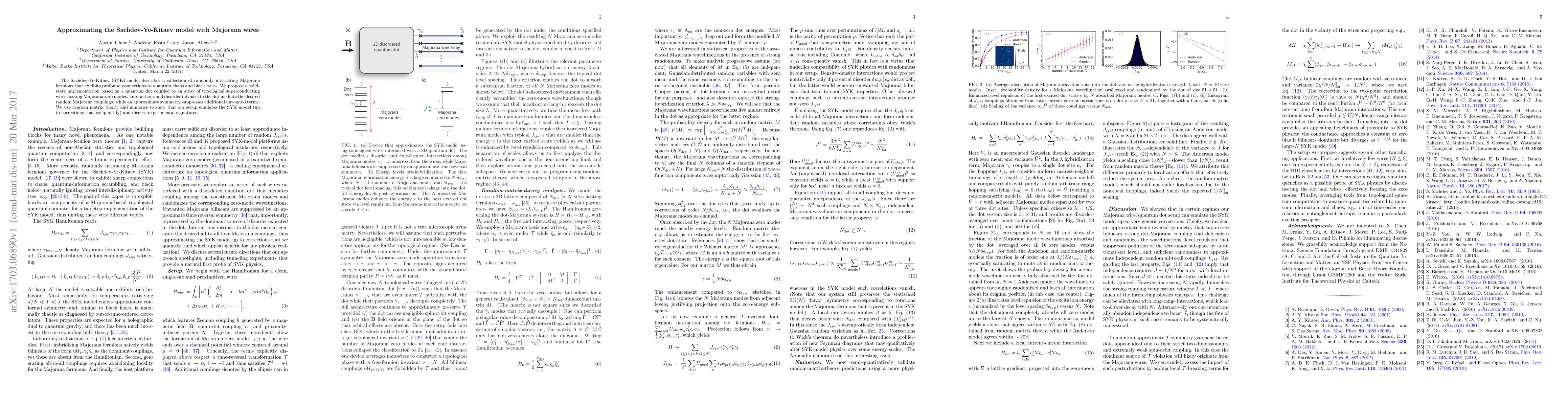 The paper proposes a solid-state setup using Majorana wires coupled to quantum dots to emulate the Sachdev-Ye-Kitaev model, showing via theory and numerics that it approximates the SYK model with quantifiable corrections, and discusses possible experimental signatures.