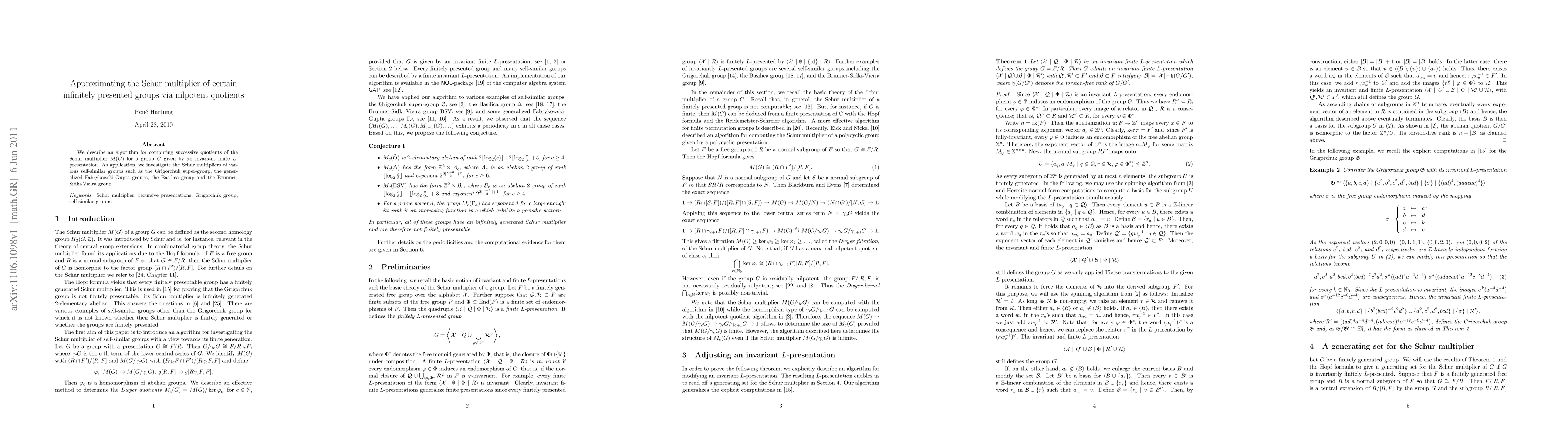 We describe an algorithm for computing successive quotients of the Schur multiplier $M(G)$ for a group $G$ given by an invariant finite $L$-presentation. As application, we investigate the Schur multipliers of various self-similar groups such as the Grigorchuk super-group, the generalized Fabrykowski-Gupta groups, the Basilica group and the Brunner-Sidki-Vieira group.