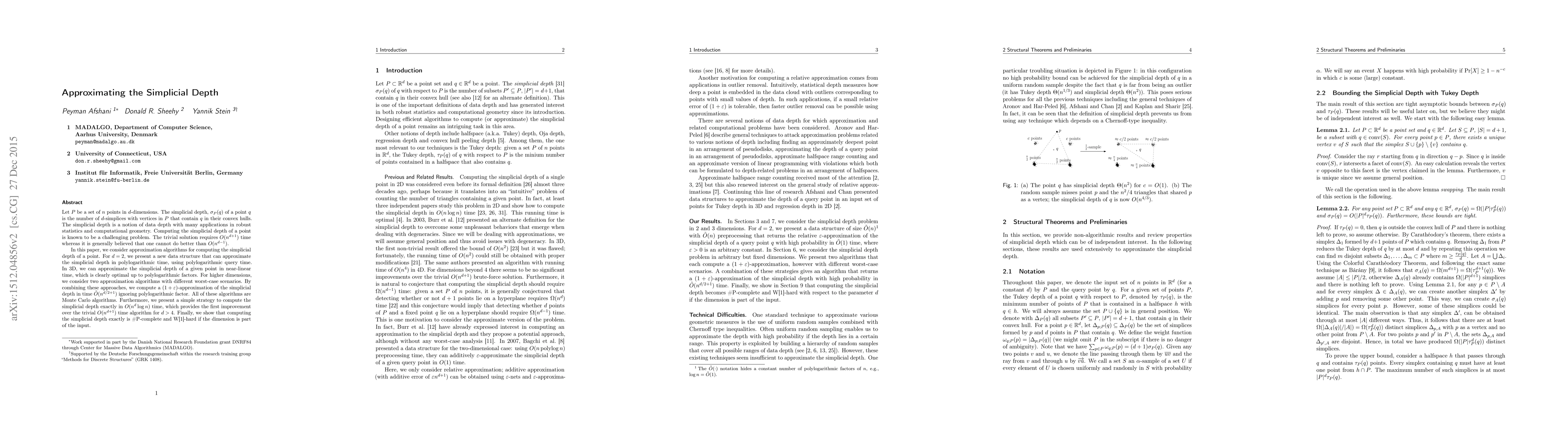 Researchers have developed approximation algorithms to compute the simplicial depth of a point in high-dimensional space, achieving near-linear time complexity for 3D cases and improving upon existing $O(n^{d+1})$ time algorithm for dimensions greater than 4.
