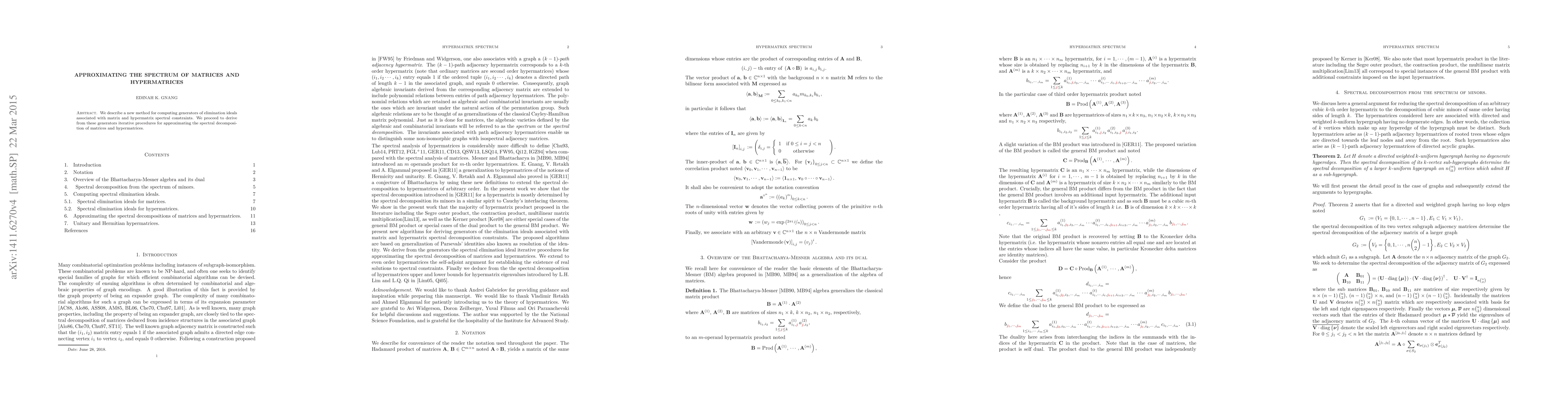 We describe a general approach for computing generators for elimination ideals associated with matrix and hypermatrix spectral decomposition constraints. We derive from these generators iterative procedures for approximating the spectral decomposition of matrices and hypermatrices.