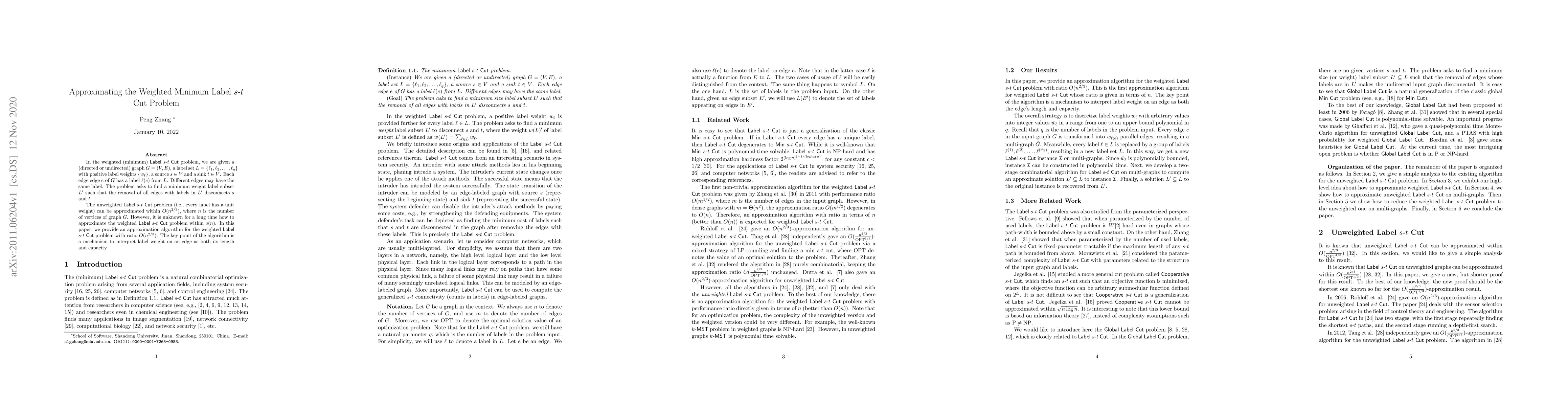 This paper presents an approximation algorithm for the weighted Label $s$-$t$ Cut problem, achieving an approximation ratio of $O(n^{2/3})$. The algorithm innovatively treats label weights on edges as both length and capacity to effectively solve the problem.