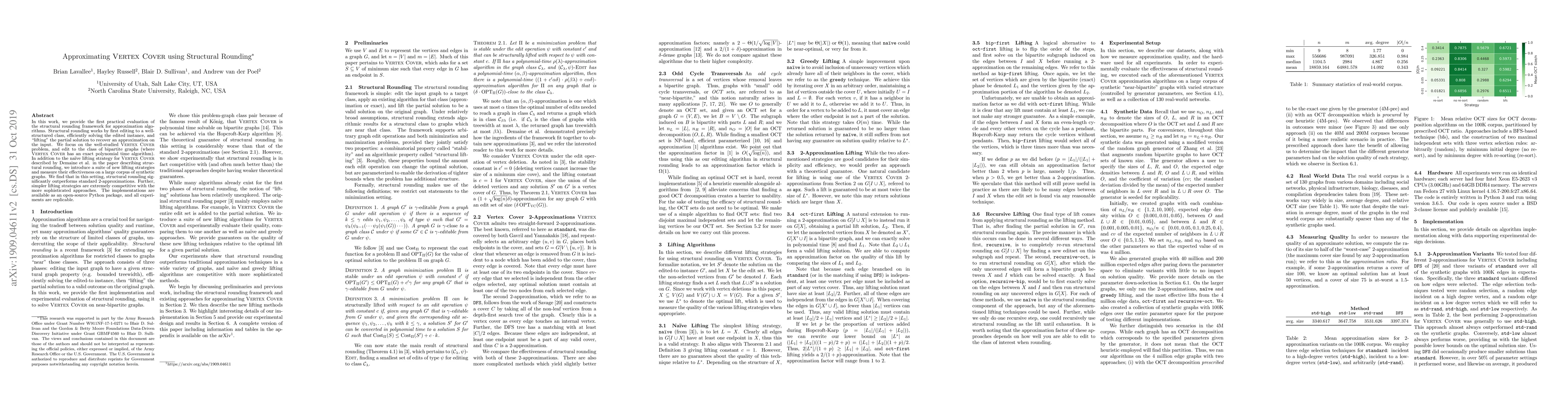 This paper evaluates the structural rounding framework for approximating the Vertex Cover problem, particularly focusing on editing instances to bipartite graphs and introducing new lifting strategies. The results show that structural rounding outperforms standard 2-approximations, with simpler strategies proving competitive.