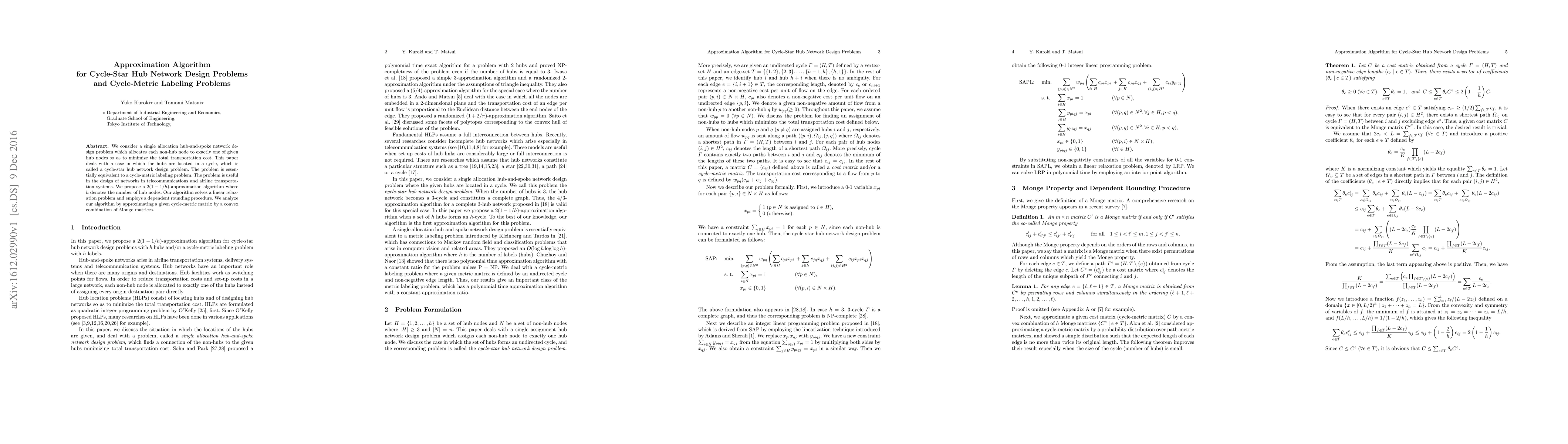This paper proposes a $2(1-1/h)$-approximation algorithm for the cycle-star hub network design problem, which minimizes transportation costs by allocating nodes to hubs in a cycle. The algorithm solves a linear relaxation and uses a dependent rounding procedure, with analysis based on approximating cycle-metric matrices by convex combinations of Monge matrices.